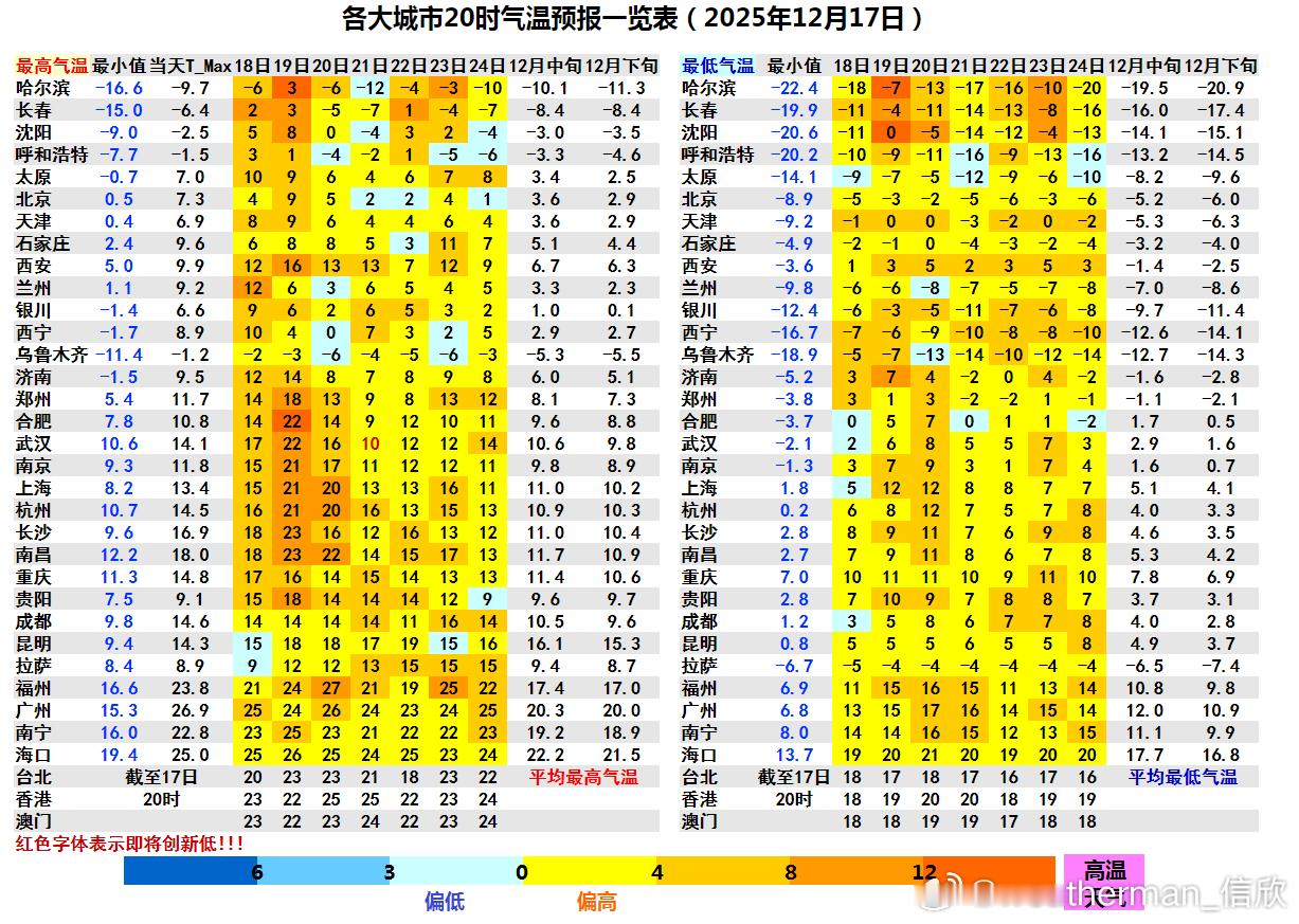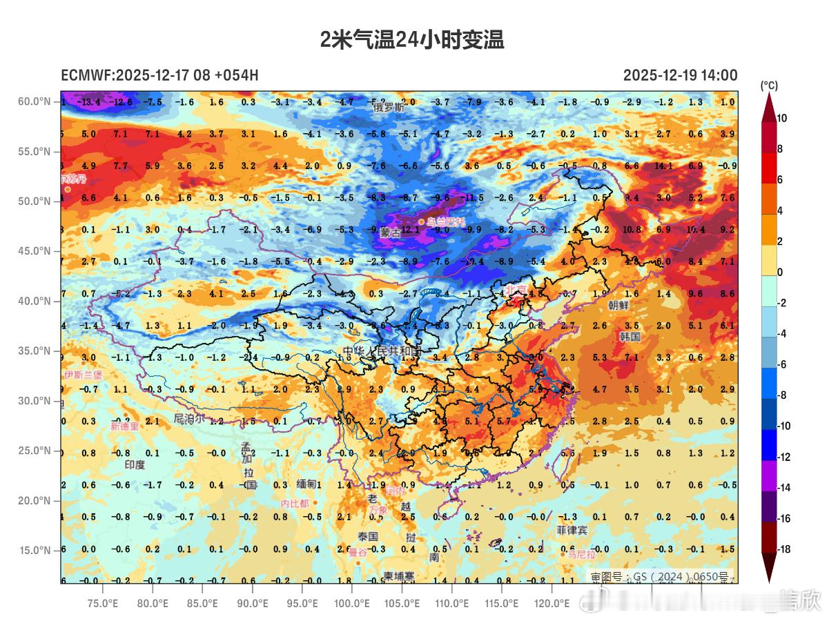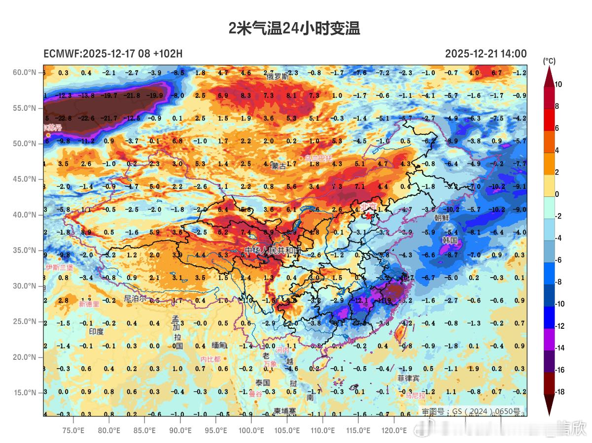【气温起伏加大】未来气温将在偏高和正常水平之间来回波动,东北和长江中下游地区振幅最大。冷空气刚一离开,气温就反弹,比如18-19日。而且19日黑龙江、江苏、安徽、湖北、湖南等地的温暖程度同期少见,甚至可能打破12月中旬纪录。但19日已经有冷空气影响甘肃、内蒙古,20-21日东移南下,导致中东部剧烈降温。目前数值预报给出21日下午对比20日下午,浙江可能骤降15℃以上。22日中东部再度回暖,但23-24日再来一波冷空气降温。总体上,冷空气活跃,但绝对实力一般。哈尔滨从今天算起,未来气温的高低点变化:零下9.7℃-零上3℃-零下12℃-零下3℃-零下10℃。也就是2天升12.3℃、随后2天降15℃,之后2天又升9℃、紧接着1天后降7℃。气温起伏大,变化节奏快,要小心感冒。