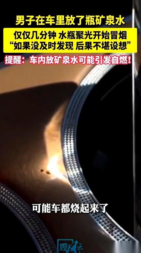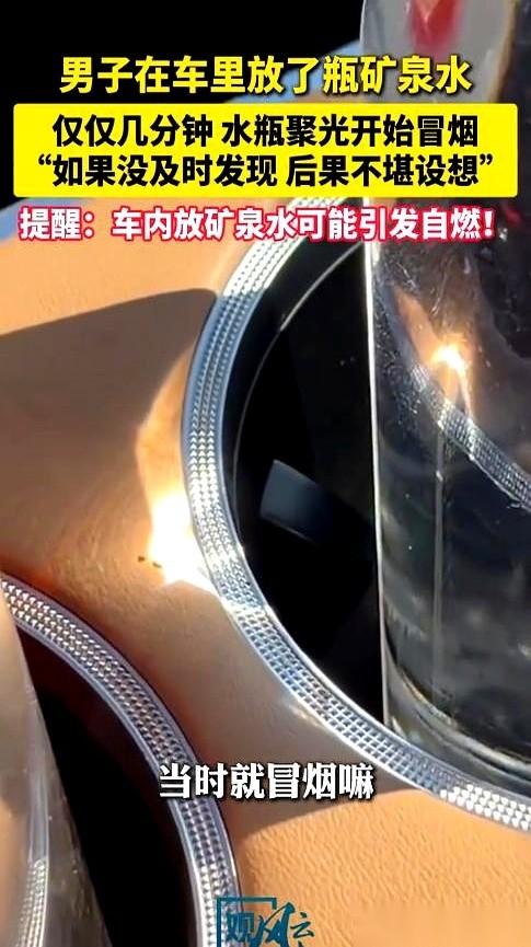 车里突然一股烧焦味儿。 第一反应,是外面飘进来的?可车窗关着。 第二反应,坏了,线路烧了?可车是新买的。 直到低头一看,魂儿差点吓飞了。杯架,我那个放杂物的杯架,在冒烟! 塑料已经烤得变形、发黑,罪魁祸首,就是旁边那瓶我刚随手塞进去的矿泉水。 真的,就一瓶最普通不过的矿泉水。 阳光从前挡风玻璃射进来,那瓶水,就变成了一个放大镜,懂吗?初中物理。 所有的光和热,全聚在那一个点上,对着我的杯架,死磕。 就几分钟。 我还在车里刷着手机回着消息,差点就把自己连车带人,打包送走。 这事儿最让人后背发凉的地方在哪? 不在于一瓶水能点着一辆车。 而在于,我们所有人都觉得这不可能。 我们总以为危险是大事。是发动机漏油,是轮胎爆了,是哪个二百五喝多了撞过来。 我们警惕那些轰轰烈烈的东西,却对自己每天最顺手的习惯,毫无防备。 上车,把水往杯架一扔。 谁不是这样? 这就像一个提醒,一个特别扎心的提醒: 真正能搞垮你的,往往不是什么惊天动地的大风大浪,而是你日复一日、习以为常的某个小细节、小疏忽。 你以为那瓶水是解渴的。 错了,在太阳底下,它是个玩火的。 别说水了,老花镜、香水瓶、打火机…任何能聚光的东西,在车里都是定时炸弹。 它们不认你车是三十万还是三百万,只认物理定律。 真的,回家都看看吧。 车不是储物柜,尤其不是透明的储物柜。 别让最解渴的东西,成了最要命的东西。