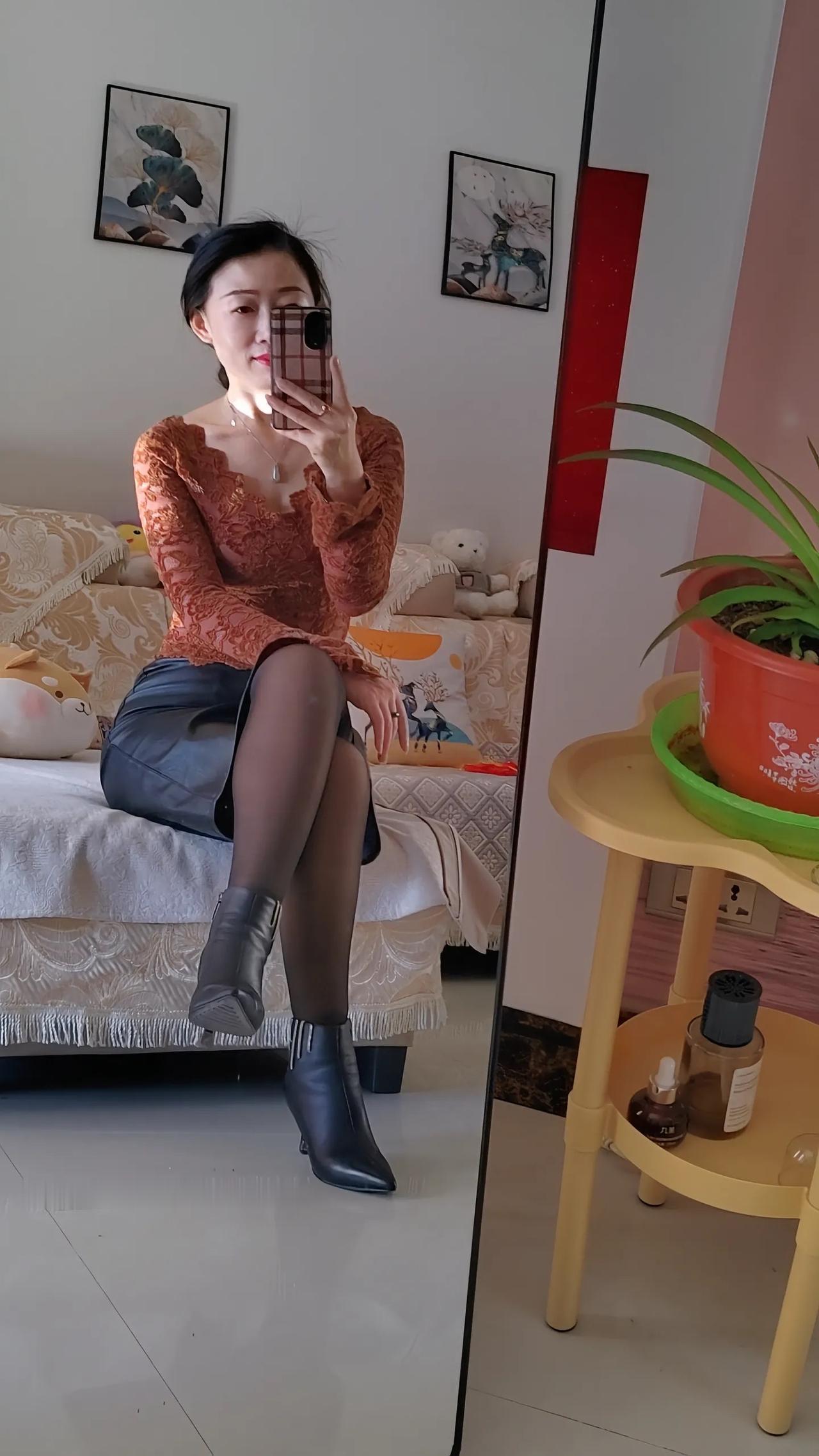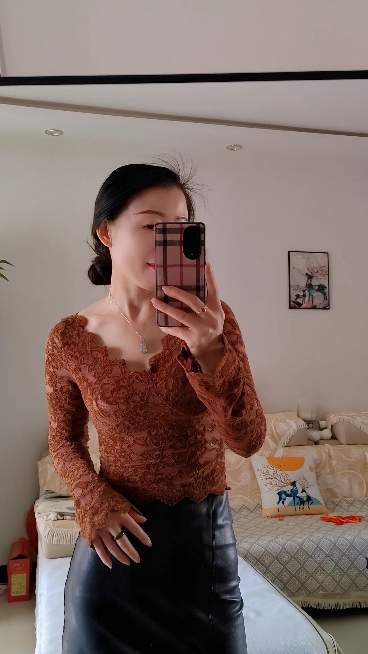 优雅蕾丝上衣搭配黑色皮裙,气质满分!💃🏻✨
