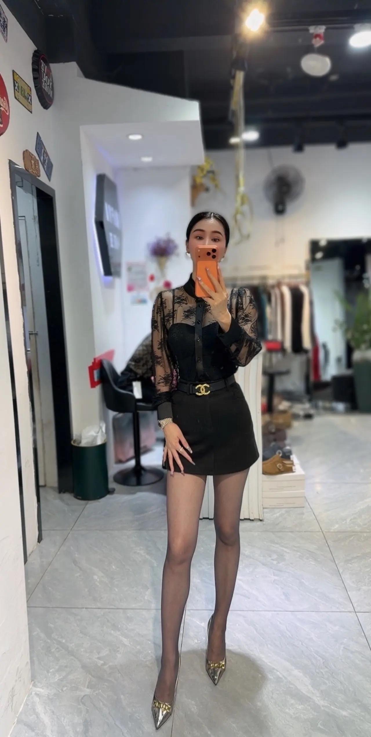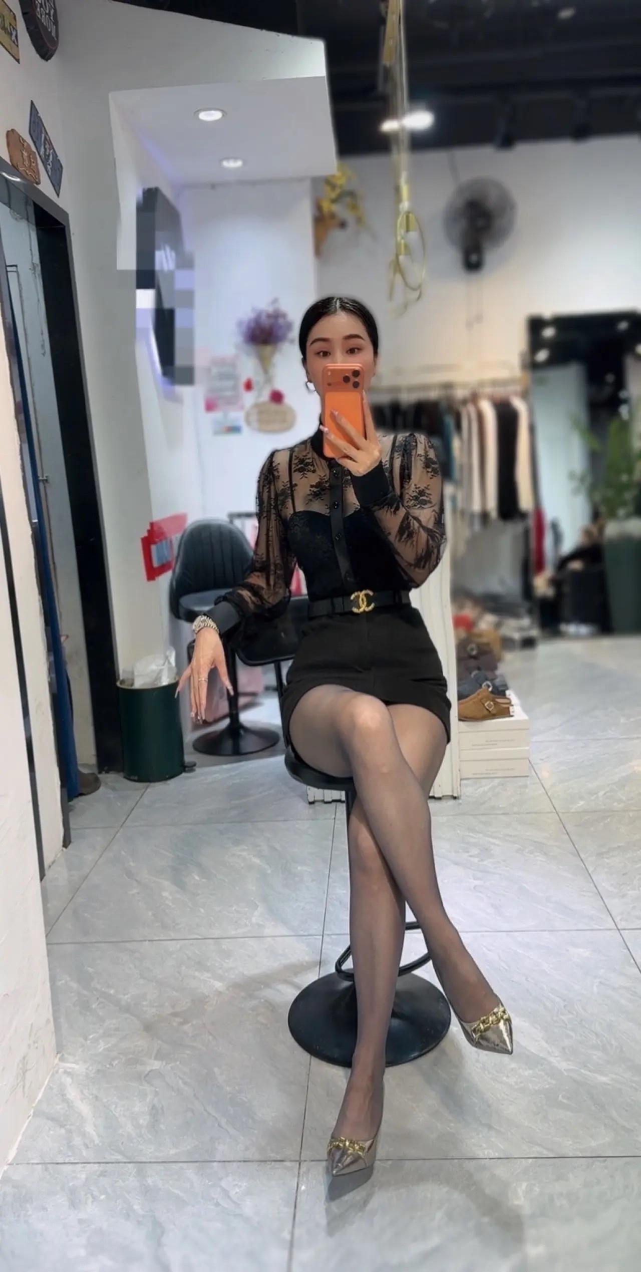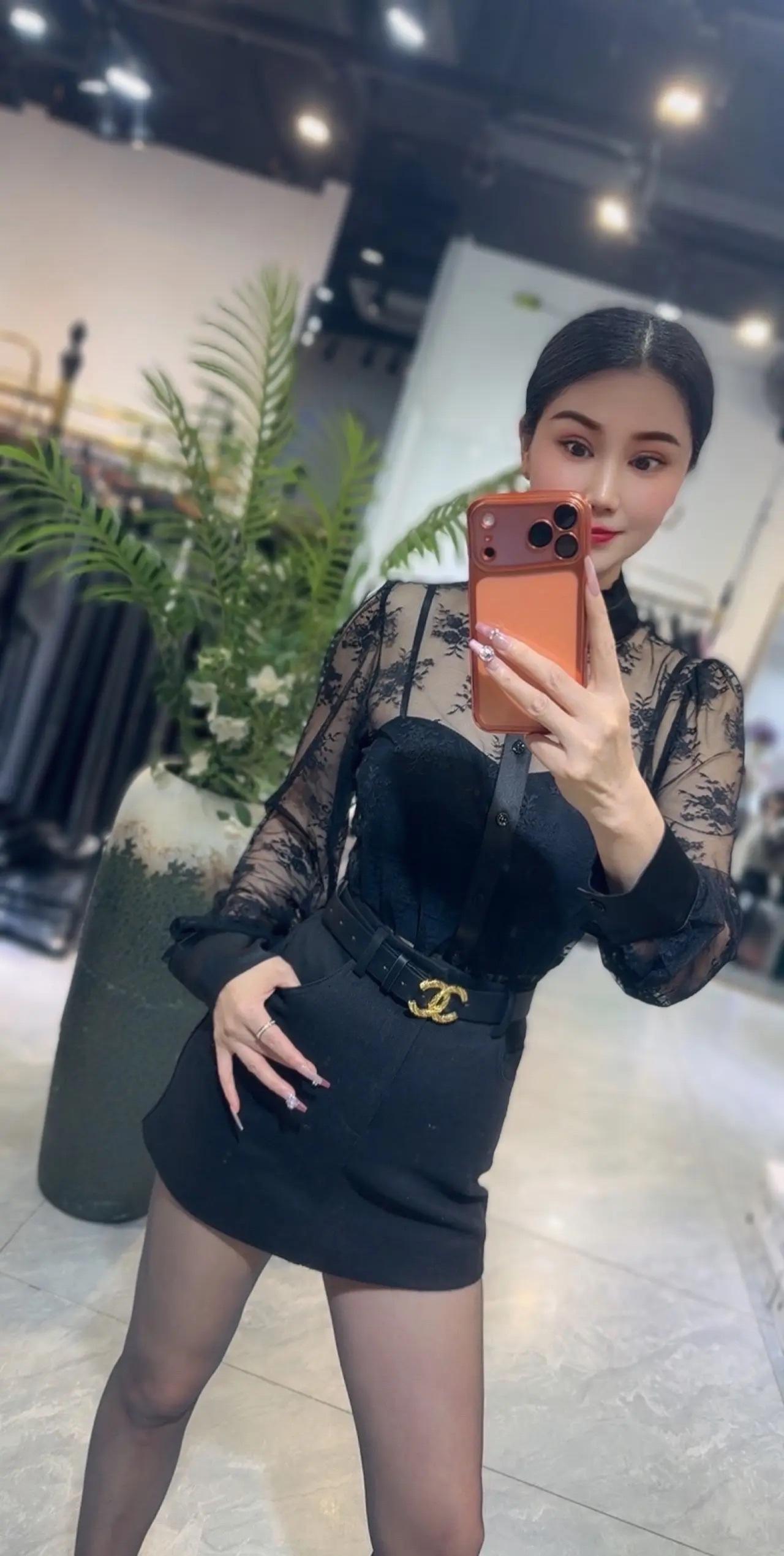 优雅黑纱装,绿植点缀的茶馆,时尚与自然的完美融合。