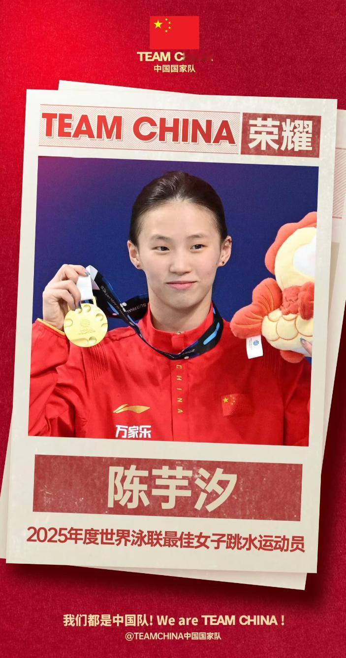🏆荣耀时刻:来自世界之巅的年度加冕 官方公告: 世界泳联(World Aquatics)正式宣布, 陈芋汐当选2025年度最佳女子跳水运动员 至高提名:此前, 她已入选 2026年劳伦斯世界体育奖“年度最佳女运动员”候选名单,全球仅12人获此殊荣,她是其中唯一的中国面孔。劳伦斯奖素有“体坛奥斯卡”之称,这意味着她的影响力已超越跳水,成为世界体坛的焦点。 画面定格:这份荣誉的背景,定格在 新加坡2025年世锦赛的赛场。正是在那里,她以创造历史的世锦赛四连冠和绝对优势的分数,这一整年的完美表现写下了最有力的注脚。 这份荣誉,为何如此沉甸甸? 这尊“年度最佳”奖杯的含金量, 远超一枚金牌。它代表着: 一、全年表现的“终极总结”:它不是对某一场比赛的奖励,而是世界泳联对陈芋汐在整个2025 赛季保持全胜、开创历史的权威认证。 二、从“冠军”到“标志”的升华:她不再仅仅是中国队的冠军,而是被世界水上运动最高管理机构官方认定的、该项目在全球的“年度代表人物”。 三、双重殿堂的认可:她同时手握 世界泳联的年度最佳与 劳伦斯奖的提名,这标志着她的伟大同时获得了 专业领域内 与 全球体育界 双重最高殿堂的背书。 这一刻,所有曾为她计算过的分数、分析过的细节、赞叹过的稳定,都汇聚成了世界泳联官宣中那几个最重的字:年度最佳。 她的传奇,又添上了最辉煌的一页。 这值得我们所有人,为之欢呼,为之骄傲!