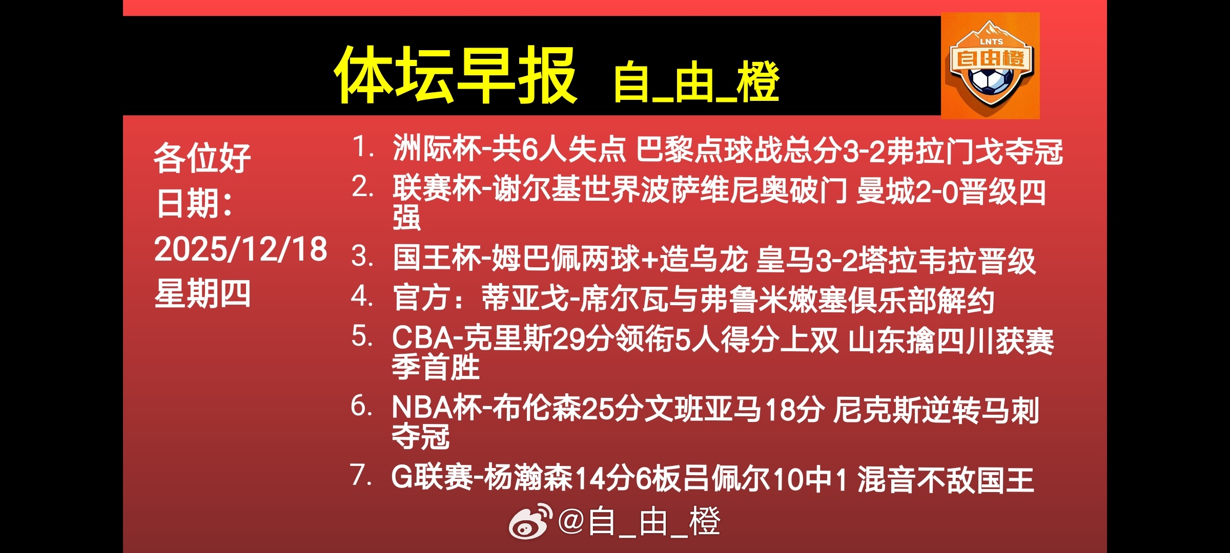 生活欺负了你,不要悲伤,不要气馁,因为只要你愿意抬头,阳光就在你眼中。早安!自由橙体坛早报体坛早报每日橙语