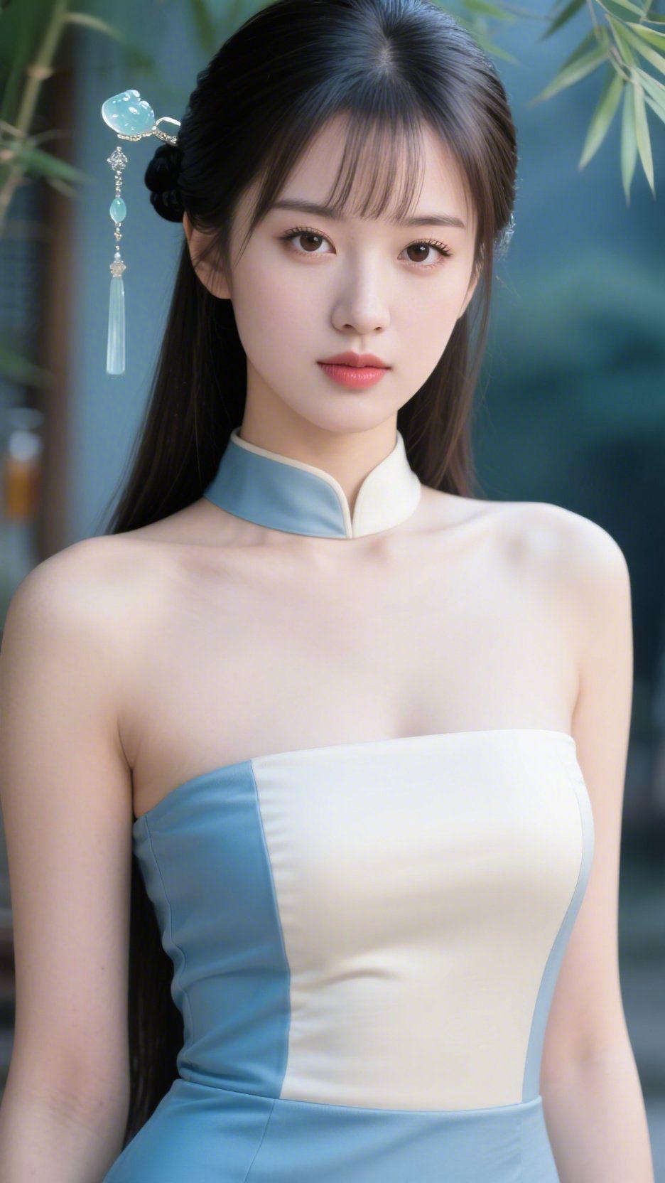 竹影清风漾国风 青竹疏影在身旁轻轻摇曳,青蓝与米白搭配的衣装,将东方美学的温婉意韵娓娓道来。玉色发簪垂着清透的流苏,随微风轻晃,仿佛把江南水乡的婉约气息,都揉进了眉眼的温柔里。 身处快节奏的生活中,我们总忙着追赶新潮的脚步,却常常忽略了传统之美里的宁静与雅致。这抹古典的配色,这份含蓄的精致,像一杯慢煮的清茶,慢慢抚平了心底的浮躁。 不必远赴江南寻古韵,不必深巷探幽觅雅致,当传统的审美与现代的设计相融,便在寻常光景里酿出了诗意。原来东方美从不是遥不可及的过往,而是藏在细节里,触手可及的温柔与美好。 国风美学之韵 竹影间的古典美