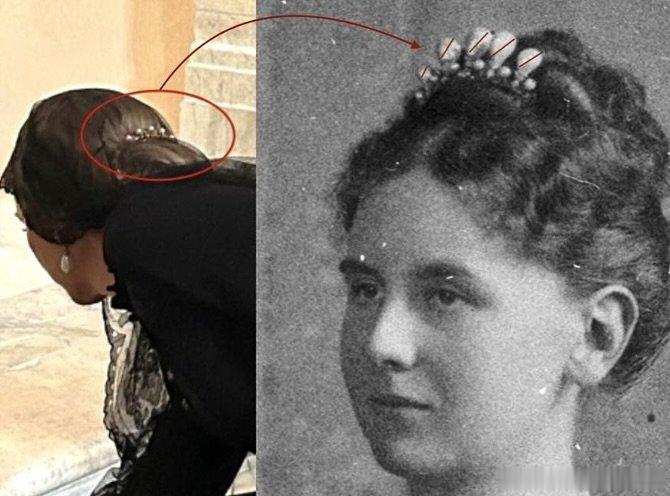 珠宝 荷兰王室的钻石发梳/小王冠,钻石发梳/小王冠呈流苏设计,顶部的钻石可以替换成小圆珠,也可以在顶部增加梨形珍珠或其他宝石,该珠宝最早来自荷兰女王威廉明娜(图1),据说是1910年威廉明娜从丈夫亨利克那里收到的礼物(但未有实锤)。由于这件发梳/小王冠太不起眼,威廉明娜略戴过几次后就扔库房压箱底了,直到2010年玛克西玛重新挖出来当成发梳来用(图2),2013年荷兰国事访问新加坡时,玛克西玛把它改成小王冠佩戴(图3),今年5月,玛克西玛又翻出来,而且是以珍珠版本的发梳形式佩戴出席新教皇利奥十四世的就职典礼(图4),好家伙,真是玩出花来了。(来源于ins:dutchroyaljewels)