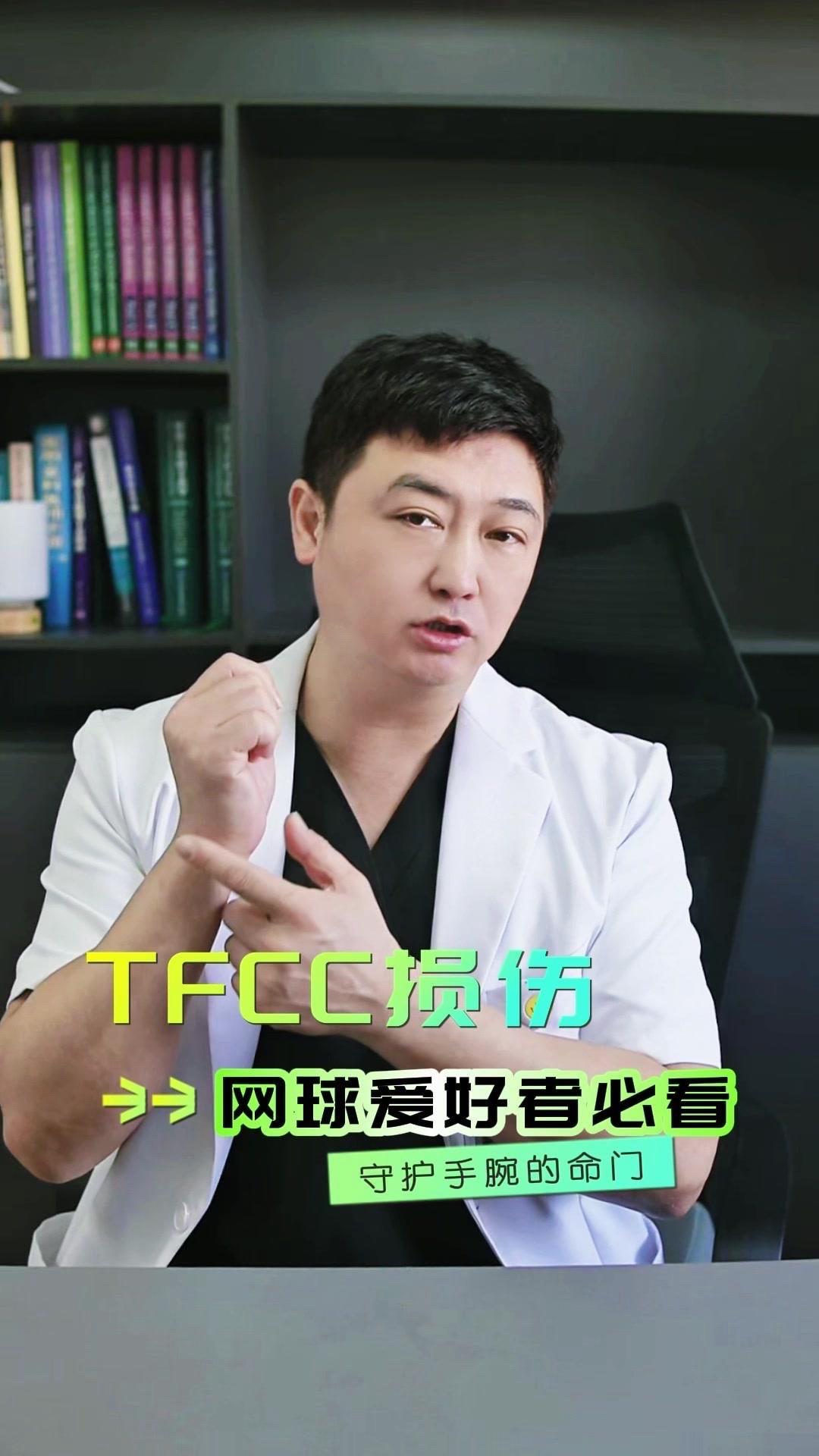 最近遇到个网球爱好者,打完球手腕内侧隐隐作痛,旋转或撑地时痛感加重,一查是TFCC损伤了。所以打网球的朋友,出现类似症状要警惕。 TFCC全称三角纤维软骨复合体,藏在手腕小指内侧,由软骨盘和尺侧韧带组成。它是腕关节的稳定器,能固定尺骨和桡骨,还是缓冲垫,帮我们承受负重,在手腕旋转、挥拍发力时都很重要。 为啥网球选手容易伤TFCC?扣杀时手腕向尺侧挤压,不规范动作会过度牵拉挤压;打球摔了撑地,可能急性损伤;长期动作不规范、反复挥拍,球拍不合适或磅数高,会积累微小损伤成慢性磨损。 TFCC损伤早期症状易被忽视,可能只是小指侧隐痛,活动加重,握力变弱,甚至有弹响。若不管不顾,炎症因子堆积会引发关节炎,影响手腕功能。 轻度损伤早发现早干预,非手术治疗如制动、冰敷、超短波,配合规范动作能恢复。严重损伤要及时做关节镜下微创缝合,保住运动能力。 日常防护很简单,每次打球前花5-10分钟热身,活动腕部促进血液循环再上场。腕关节虽小,却是网球核心,保护好TFCC,才能稳稳出击。