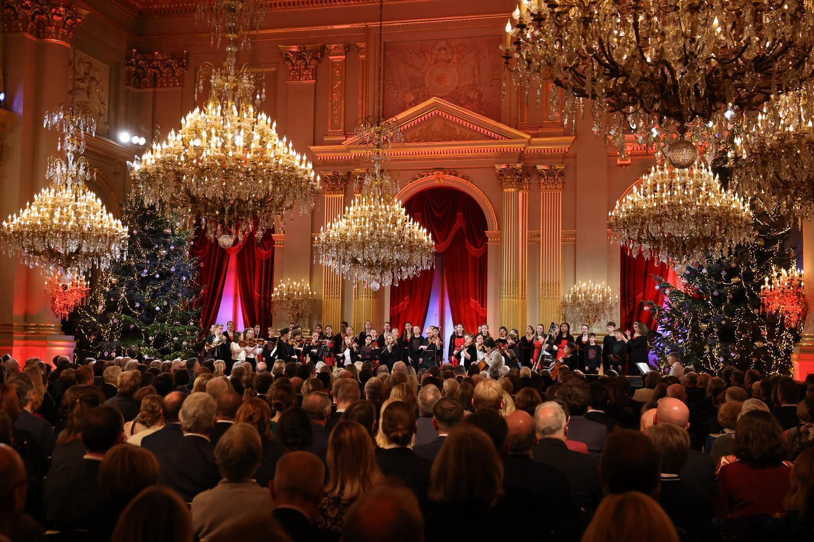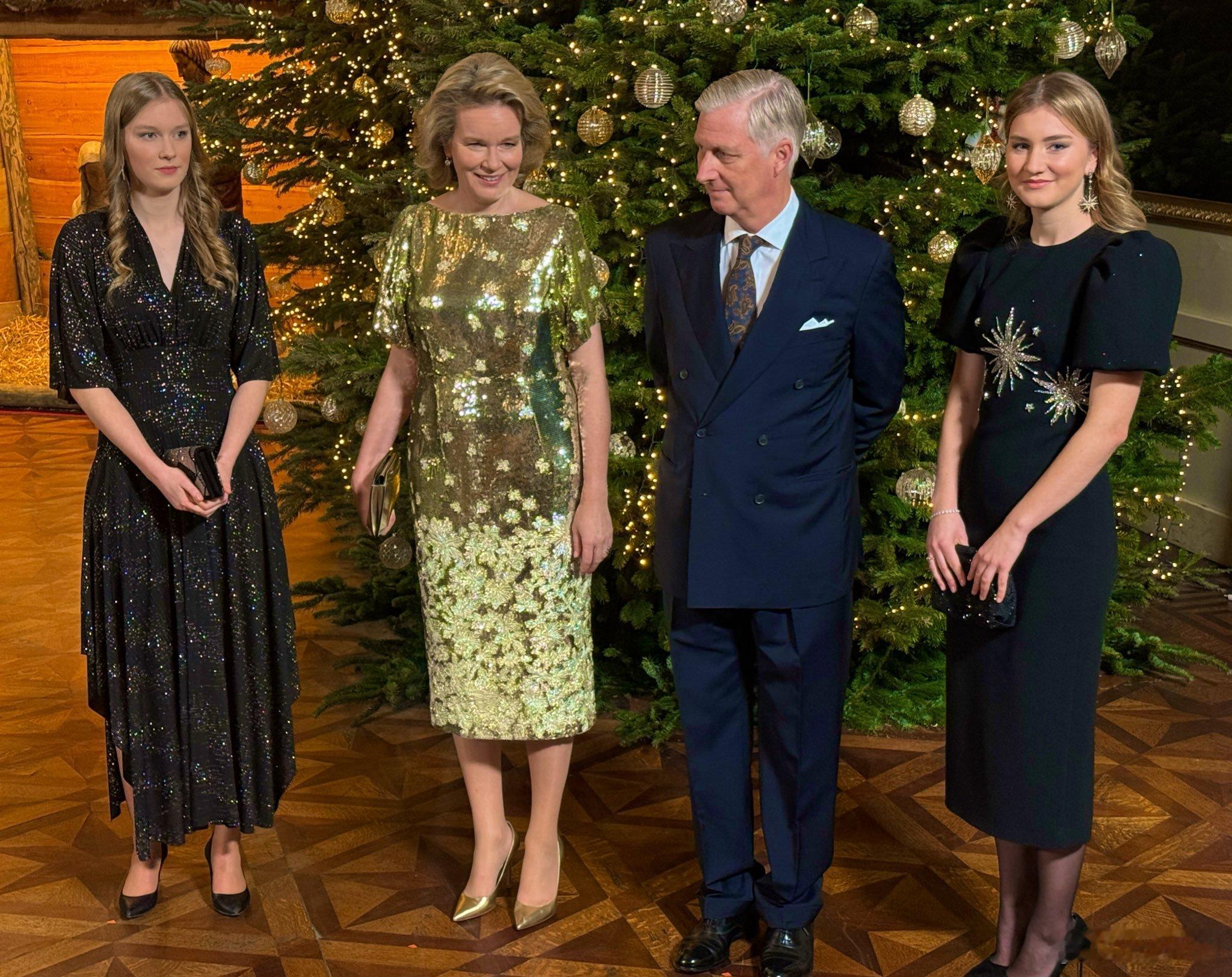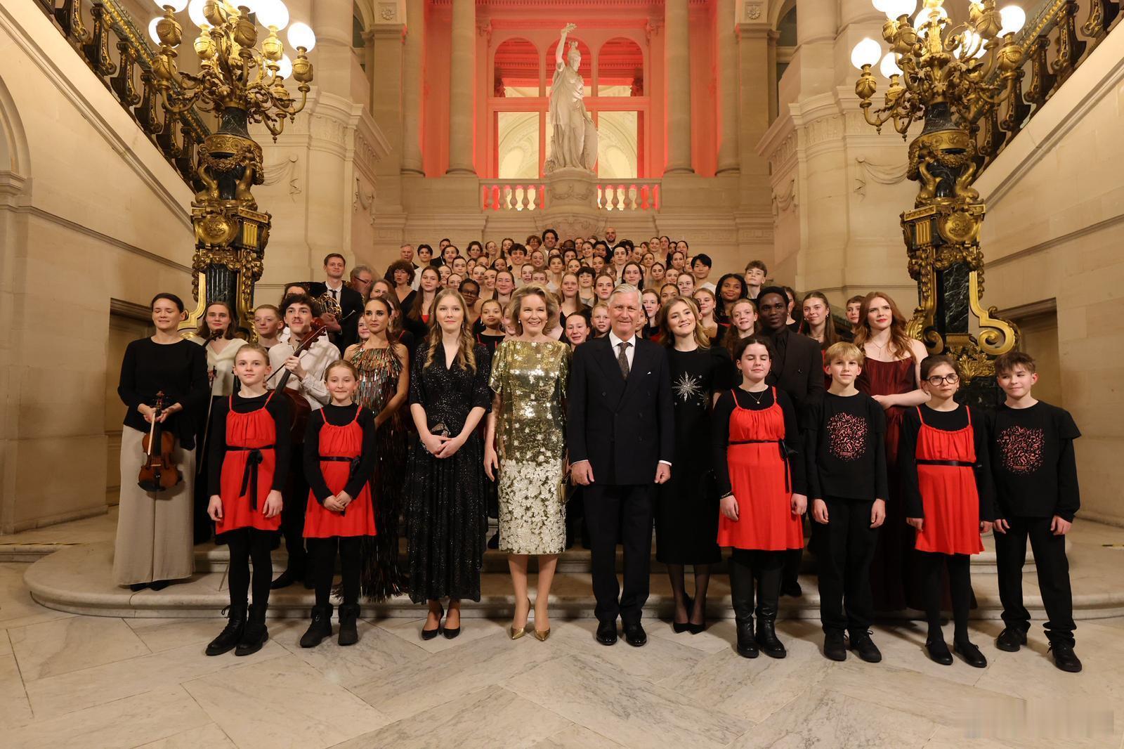 比利时王室 🇧🇪12月17日,菲利普国王和玛蒂尔德王后、在两个闺女伊丽莎白女王储、埃丽奥诺尔公主陪同下主持2025年度圣诞节音乐会。🎶550多名贵宾受邀出席音乐会。王储裙子来自 Rebecca Vallance,小妹裙子来自ba&sh。世界各国王室