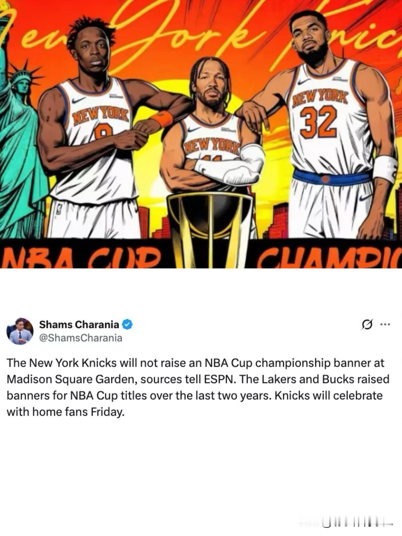 尼克斯不会在主场升起NBA杯冠军旗帜! 主帅布朗:NBA冠军就像餐前开胃菜,并不是主菜!总冠军才是我们想要的主菜!
