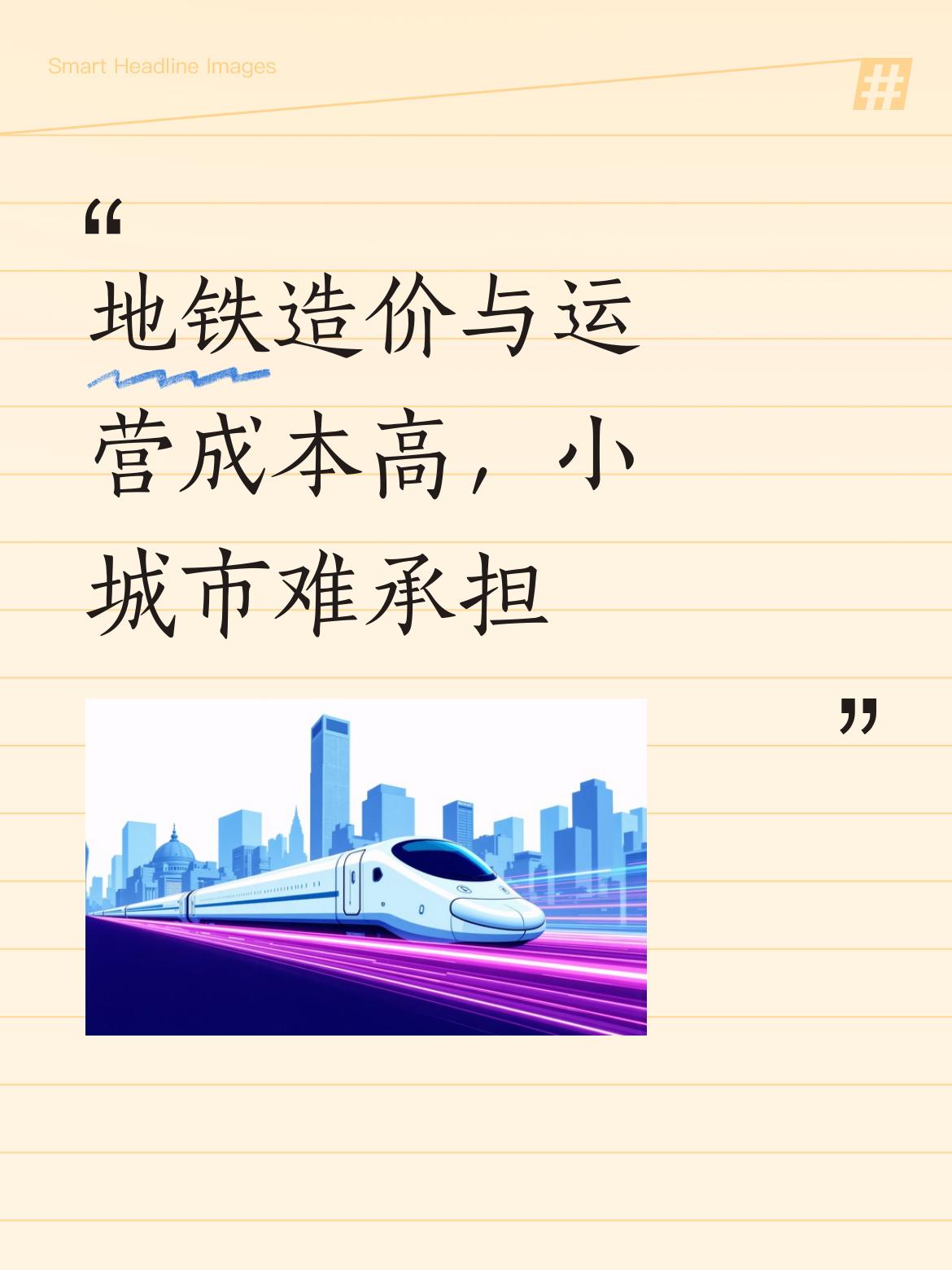 地铁造价高,一般小城市的经济体量和人口规模,根本就担不起这样的建设成本!运营成本更是高得吓人 如果一味地追求地铁作为交通出行的唯一工具,那可不太现实,那样会给当地财政增添更多的负担, 这是能想象的出来的,别说叫回成本投资,客流少可以说支撑一条线高昂的运营成本都是大难题! 资阳最为五线的一个小城市之所以通地铁,正是因为占了天府国际机场的地利跟成都的红利,不然也实现不了“地铁梦” 经济体量小,人口规模小的城市🏙很难实现人们的愿望!