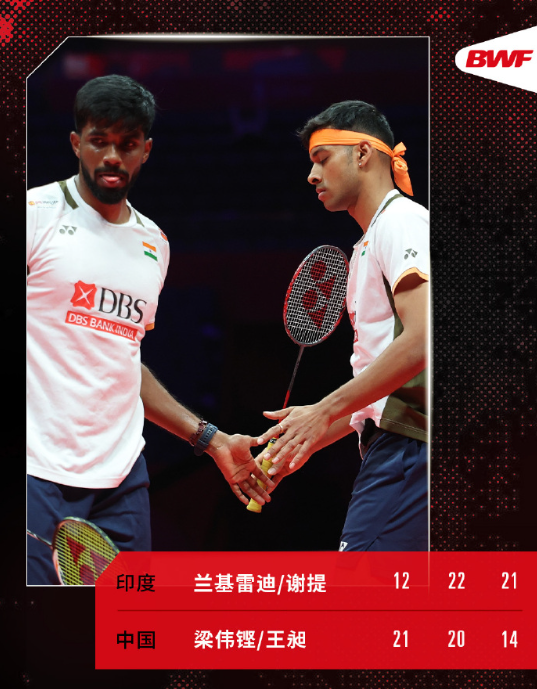 梁王组合鏖战三局遭印度组合逆转,首战失利。