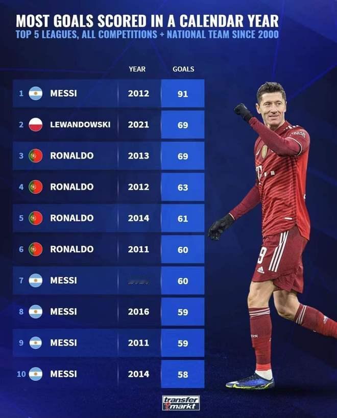 这姆巴佩进球效率也太恐怖了吧?要是这周末主场再进4个,那就能和莱万C罗并列第二了。 其实每次看这个榜单,我都觉得梅罗的数据实在太恐怖了。 记得当时我每周都看体育新闻,那一年我听到最多的词语就是,梅开二度。听到后面我都没感觉了。那一年我一直觉得这个词是专为梅西而发明的。 梅西的91球记录怕是未来50年内都没人能破得了。