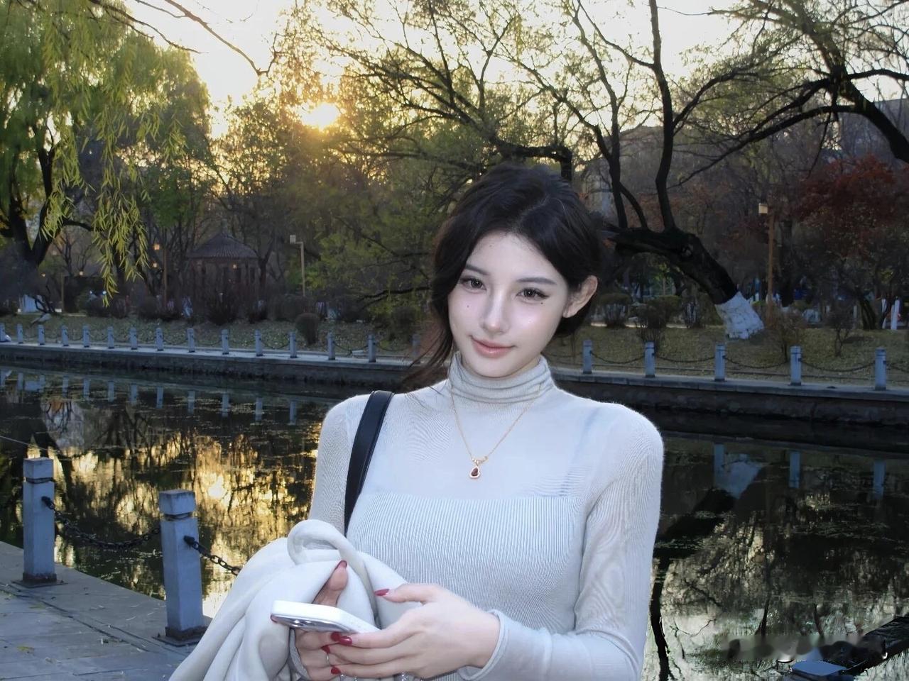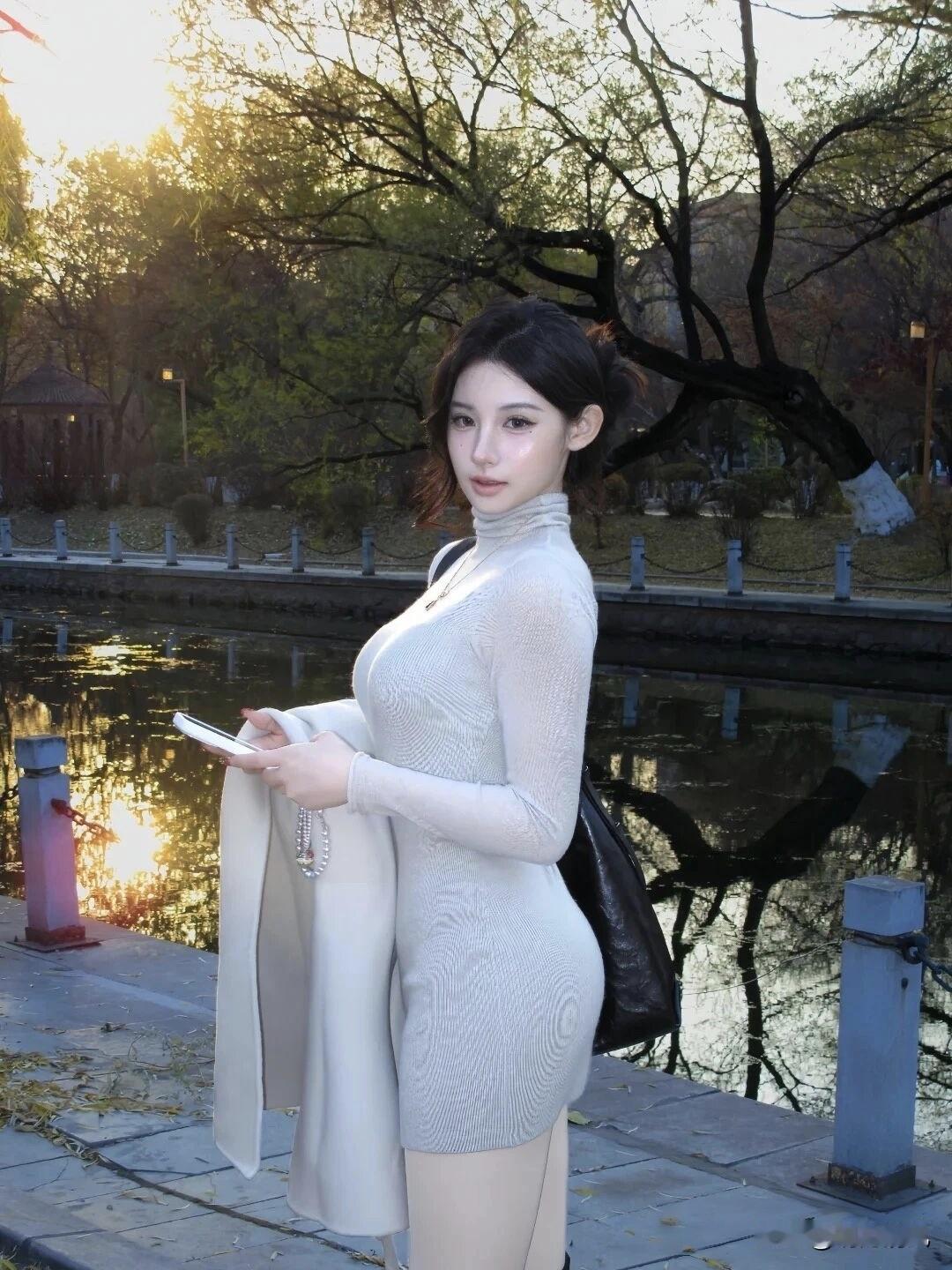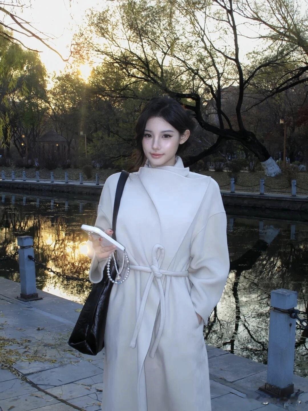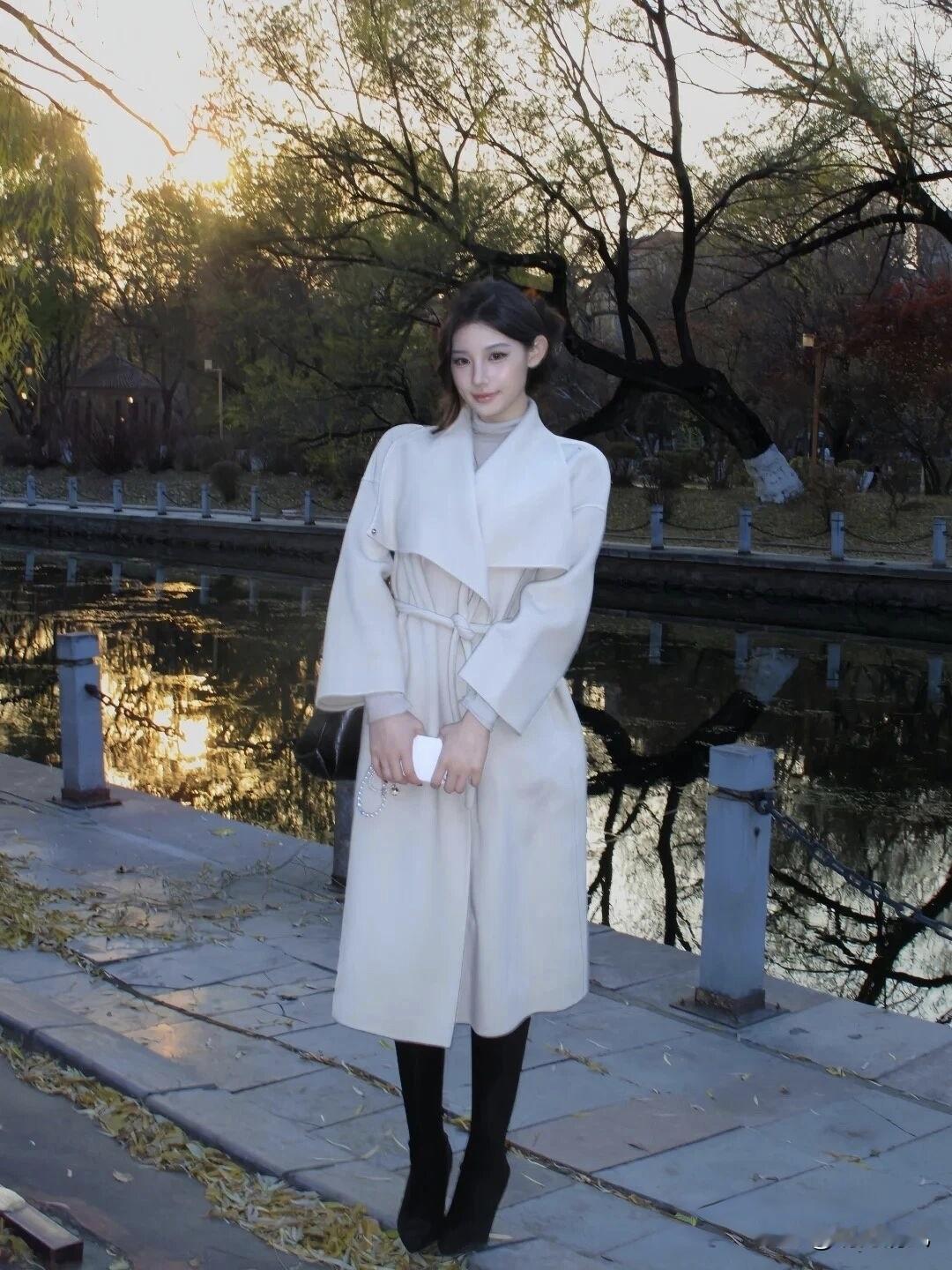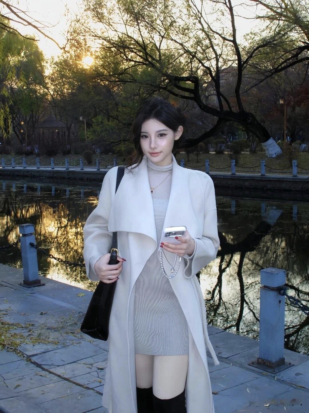 降温了才发现,衣柜里最温柔的,永远是那件米白色大衣。浅灰针织裙一套,高领打底的细条纹若隐若现,珍珠链子在领口晃啊晃的,不夺目,却悄悄添了点光。湖边散步时,夕阳把树影拉得长长的,风衣下摆也跟着轻轻荡。 原来冬天最好的穿搭,不是层层叠叠的包裹,而是这样一身松弛又暖和的温柔。像把整个黄昏披在身上,清冷又柔软。 你的冬天,最爱哪件外套?