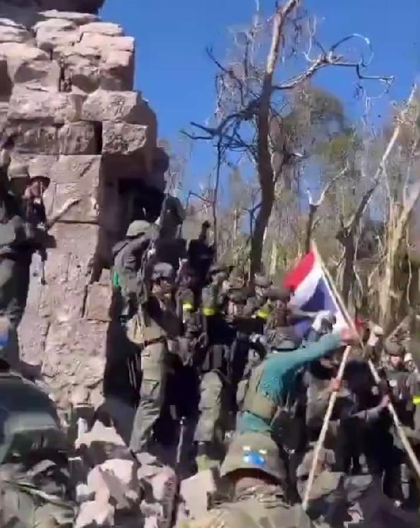 2025年12月17日,柬埔寨军方发布了,柬埔寨敢死队突击达奎寺的画面,泰国军队防御柬埔寨边境的塔奎寺失利,多名泰国士兵整体,尸体和武器都被柬埔寨军队敢死队控制了。 从画面来看,在16日,泰国军队发布了在达奎寺庆祝攻占的画面,按照泰国军方的说法,在达奎寺内,柬埔寨军队修建了碉堡,在泰国军队的打击下,在16日,泰国军车成功占领了达奎寺。 谁知道没有捂热乎24小时,柬埔寨军队就出动敢死队,在神秘火力的配合下,柬埔寨军队敢死队战士手持56冲,光着脚丫子,顺利夺下达奎寺,升起柬埔寨国旗,缴获泰国士兵的武器,包括步枪,机枪等。 这波反转里,最让人好奇的有两点,一是柬埔寨敢死队为啥光着脚打仗?二是配合他们突击的“神秘火力”到底是什么? 先说说光脚这个细节,这可不是作秀,而是柬埔寨军队适应边境地形的实战智慧。达奎寺所在的柬泰边境多是山地和碎石坡,厚重的军靴容易卡进石缝,光脚反而能保持灵活,更利于快速突击。而且从历史上看,柬埔寨军队就有在复杂地形中轻装作战的传统,高棉王家军的前身在抗法、抗美时期,就常以轻便装备打游击战,这种战术基因一直延续到现在。 至于他们手里的56式冲锋枪,更是老熟人了。这款中国产步枪堪称“战场常青树”,威力大、耐造,掉进泥里擦一擦还能接着用,价格还便宜,一直是第三世界国家军队的宠儿。 柬埔寨军队的装备本就以中、俄老旧装备为主,56冲更是步兵主力武器,对士兵来说操作熟练,在近距离突击中火力压制效果十足。反观泰国军队,虽然装备更精良,但在狭窄的寺庙区域,先进装备施展不开,反而被柬埔寨人的“笨办法”打了个措手不及。 那股“神秘火力”则是制胜关键。从画面碎片能看出,它没搞地毯式轰炸,而是精准敲掉了泰国军队的几个火力点,既打开了突击缺口,又没对寺庙古迹造成大的破坏。柬埔寨军方没明说装备型号,但结合其军力配置来看,大概率是近年从中国引进的轻型迫击炮或便携式火箭筒。 这种装备便于隐蔽运输,适合山地作战,打完成功撤离,难怪泰国方面摸不清来路。这也透露出一个信息:柬埔寨军队虽然整体规模不大(总兵力约10万人),但在边境防御上早有准备,关键节点的火力部署藏得很深。 其实这场24小时攻防战,早有历史伏笔。达奎寺在泰语里叫“达葵寺”,和附近的几座古寺一样,都是公元12世纪高棉帝国的遗迹,后来因为法国殖民时期的地图划分模糊,成了柬泰两国的争议焦点。 从2008年开始,两国就曾围绕周边寺庙陈兵对峙,国际法院也多次介入调解,今年7月柬埔寨还刚把争议地区提交国际法院裁决。泰国这次突然出兵占领,本想抢个“实控”筹码,却忘了柬埔寨人对这些古寺的重视,对他们来说,这不仅是领土,更是民族历史的象征,自然会拼尽全力夺回。 泰国军队的失利,说白了是“得意忘形”。刚占了地方就忙着拍视频庆功,却没加固防御,也没预判对手的反击速度。 要知道柬埔寨的敢死队是高棉王家军的精锐,专门执行边境突击、要塞争夺这类硬任务,选拔和训练都极其严格,反应速度本就比常规部队快得多。而且从近年柬泰边境的摩擦来看,柬埔寨一直是“以守为攻”,战术上更注重灵活反击,泰国这次正好撞在了枪口上。 目前柬泰两国都没宣布扩大冲突,泰国军方沉默不语,柬埔寨则强调“只是收回自家领土”。但明眼人都知道,边境争议不会这么轻易解决。不过这场短暂的攻防战也给双方提了醒:靠武力抢占地盘只会激化矛盾,达奎寺这样的历史遗迹,不该成为战场。 毕竟早在2011年,两国就达成过联合巡逻、和平协商的共识,如今与其在寺庙前刀兵相向,不如回到谈判桌前,把殖民时期留下的旧账算清楚,这才是对历史和民众负责的态度。