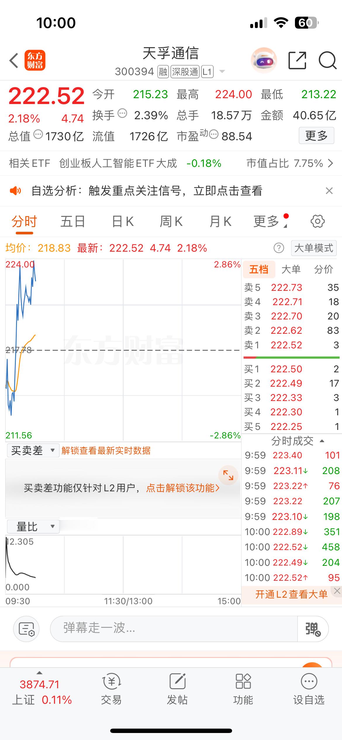 天孚今天继续强势上📈,都看好拿稳咯继续格局,昨天介入的小伙伴们点赞👍评论178来一波,大家一起起发,一路长虹的