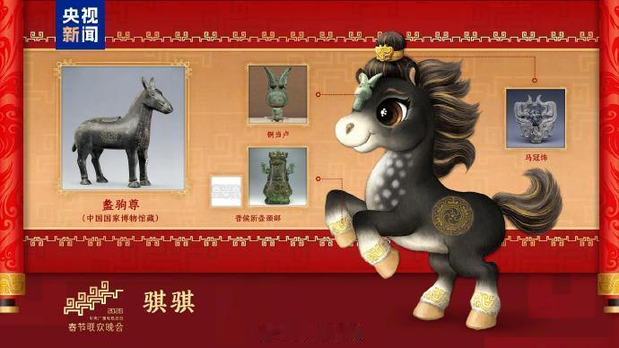 《2026年春节联欢晚会》的吉祥物,分别取名“骐骐”、“骥骥”、“驰驰”和“骋骋”,寓意“骐骥驰骋 势不可挡”。 他们的设计灵感分别来自于西周盠驹尊、汉代天马、唐代三花马和普氏野马,大家觉得好看吗?