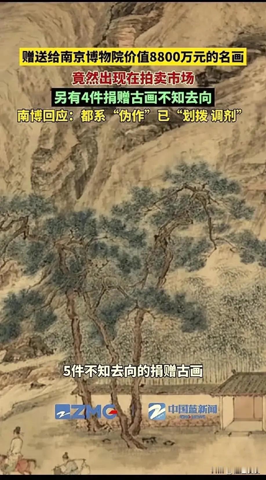 特意去查了一下,南京博物馆少的那5件文物,分别是:明代仇英《江南春》图卷、北宋赵光辅《双马图轴》、明代王绂《松风萧寺图轴》、清初王时敏《仿北苑山水轴》和清代汤贻汾《设色山水轴》。 出现在拍卖会上,正是其中的明代仇英《江南春》图卷。 本该静静躺在南京博物院的国宝级古画,出现在了拍卖会上,估价高达8800万元!不止这一件,还有4件珍贵文物也离奇失踪,委托拍卖人藏的很严实。 时间回到1959年,收藏界泰斗庞莱臣之孙庞增和,怀着“文物归公”的初心,将家族“虚斋旧藏”的137件珍贵古画无偿捐赠给南京博物院,江苏省人民委员会1962年还专门颁发了奖状,南博也出具了完整捐赠收据与清册。 这其中就包括明代“吴门四家”之一仇英的《江南春》图卷——仇英真迹存世不足200件,手卷仅30余件,这幅7米多长的青绿山水卷,早被业内誉为“仇画第一”,是实打实的稀世珍宝 。 可2025年6月,捐赠人曾孙女庞叔令按法院调解书去库房核验时,却发现5件文物不翼而飞,除了《江南春》,还有北宋赵光辅《双马图轴》、明代王绂《松风萧寺图轴》、清初王时敏《仿北苑山水轴》和清代汤贻汾《设色山水轴》。 离谱的是,早在2025年5月,这幅《江南春》就出现在了北京某拍卖公司的春拍图录上,附有第三方鉴定机构“符合明代中后期绘画特征”的证书,庞叔令发现后立刻向国家文物部门实名举报,拍品才被紧急撤拍。 面对质疑,南博2025年12月17日发通报回应,称这5件是上世纪60年代鉴定的“伪作”,90年代已“划拨、调剂”处理,但既拿不出完整鉴定依据,也说不清具体流转去向。 更让人匪夷所思的是,2014年南博举办相关展览时,时任副院长还盛赞这些争议藏品是“南博最珍贵的书画藏品”,如今的“伪作”说法完全自相矛盾。 目前庞叔令已向法院提交强制执行申请,要求南博提供详细流转材料,江苏省文物局也已介入调查,承诺15个工作日内公布结果。 博物馆是文物的庇护所,不是“糊涂账”存放地,公众信任不能这样被消耗。这5件文物到底是真迹还是伪作?“划拨调剂”的接收方是谁?委托拍卖人为何藏得严严实实? 信息来源:今日头条、网易订阅(手机网易网)、澎湃新闻报道