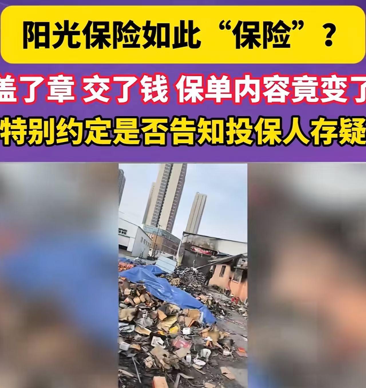 陕西,男子给公司购买了2300万保额的财产保险,可是出险后保险公司却翻脸不认,只赔偿100万!只因为保险公司偷偷在背面加了几行小字……男子:“给我设套!”网友:保险公司总有一天会把自己玩死了! 2024年12月16日凌晨,陕西国台帝泊洱商贸有限公司的存酒库房遭遇了一场突如其来的大火,仓库里的货物瞬间被烧成了灰烬。 这家公司的老板张先生,在得知这个噩耗后,安慰自己之前给公司买了保险,想着至少能挽回点损失。 可让他万万没想到的是,保险公司接下来的操作,简直让他气炸了肺。 保险公司花了半年时间对火灾损失进行评估,最后认定损失高达1300万元。可当张先生拿到理赔告知函时,却傻眼了——上面赫然写着,该保单只能赔付100万元。 张先生一下子懵了,自己明明买了保额高达2225万元的保险,还交了3万余元的保费,怎么出了事就只赔100万呢? 保险公司这时候才慢悠悠地提醒张先生,保单背面还有几行没盖章的“黑色小字”,里面“特别约定”了火灾属于其他事故范畴,最高赔付额就是100万。 张先生一听,火冒三丈,自己签合同的时候,根本就没看到这些小字,这肯定是业务员后面偷偷加上的! 张先生回忆说,当时签完保单后,他们就盖章打了钱。可不到一小时,业务员就以“章子不清”为由,要求他们重新发送保单补盖一次。 结果这第二份保单的背面,就多了那些“黑色小字”。他们在完全不知情的情况下,又补盖了章子。 张先生觉得这太不合理了,如果保单的投保条款发生了变化,保险公司应该明确告知他,再由他盖章确认才对。 可业务员却辩解说,自己详细提醒过张先生。可当张先生要求看微信记录时,业务员又拿不出来;一会儿又说电话提醒了,可通话记录只有短短15秒,15秒怕是连寒暄话都还没说完呢,能起到什么详细提醒的作用? 更让张先生怀疑的是,这三份保单的页数、行文盖章位置全都不一样,这要是没鬼,谁信啊? 张先生气愤地说,自己1000多万的货物,只保100万,这明显“不合逻辑”。车险300万的保额才一两千,自己花三万去保一个100万的低概率事件,这完全不符合购买保险的逻辑和常理啊! 【观点解析】 本来保险是大家万一出事儿时的一个靠山,现在倒好,交钱的时候痛痛快快,理赔的时候却闹心不已。长此以往,谁还敢相信保险?谁还愿意买保险? 法律早有规定,像这种限制保险公司赔偿责任的条款,必须用加速字体标出来,还得当面跟投保人说清楚,不然这条款就无效。可阳光财险倒好,把条款藏在背面,用小字写,既不盖章,也涉嫌未清楚告知,这不是明摆着挖坑吗? 在此,我必须犀利地指出:保险公司这种耍小聪明、挖坑设套的行为,无异于饮鸩止渴!他们或许能在一时得逞,但长远来看,失去的将是消费者的信任和市场的口碑。一旦口碑坏了,再想赢回大家的信任,那可就难上加难了。到时候,别说赚钱了,连生存都成问题! 至于咱老百姓自己投保的时候,也得多留个心眼儿。业务员说得再好听,条款咱也得逐字扫一遍,尤其特别规定、免责这些字眼,看不懂就当场问清楚。别等到出了事儿,才后悔自己当初没仔细看。 保险本该是咱遇到难处时的靠山,不是保险公司算计人的工具。所有的保险公司都应该明白一个朴素的道理:诚信经营,才能走得更远;坑蒙拐骗,终究自食恶果!