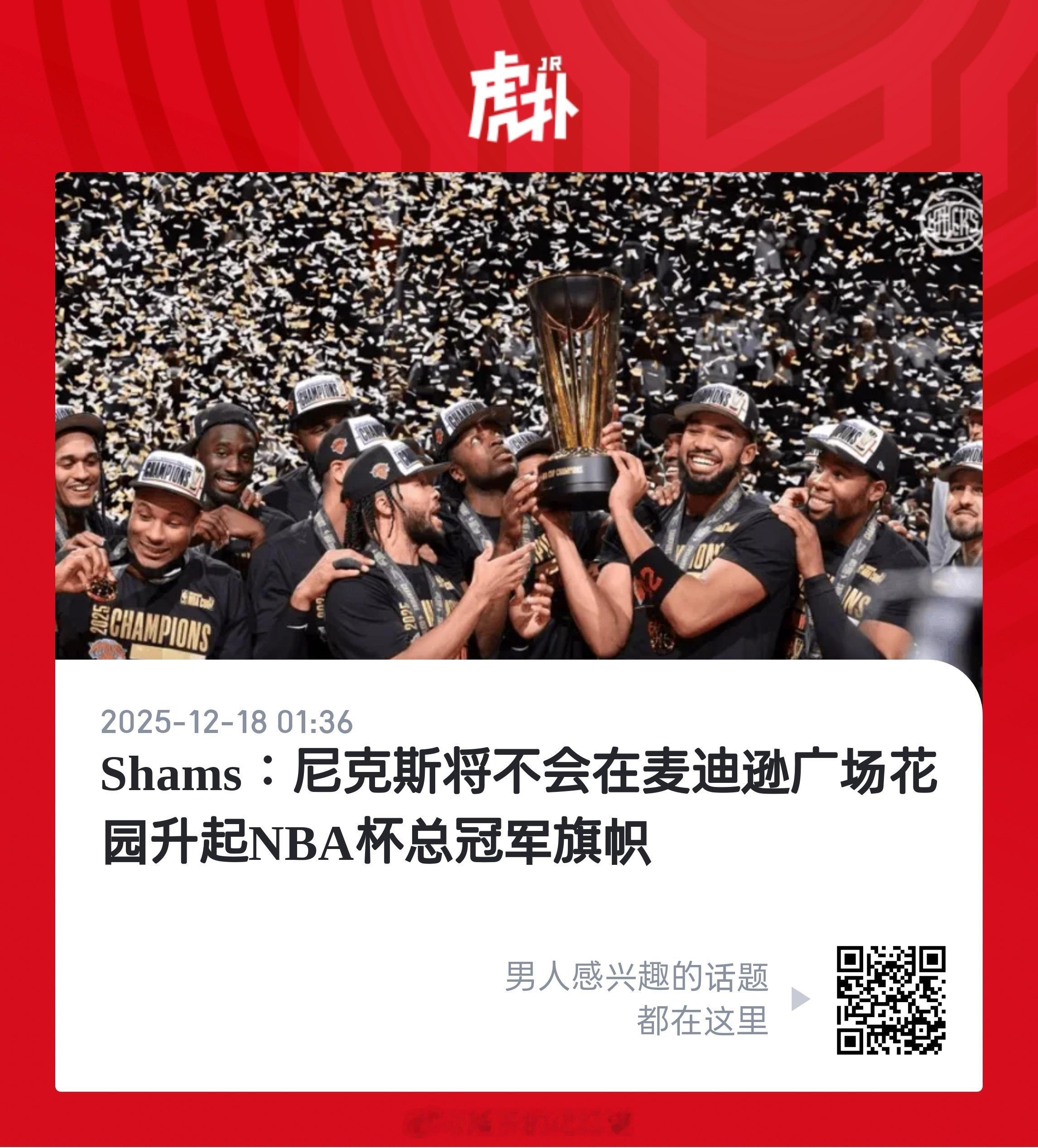 尼克斯不会悬挂NBA杯冠军旗帜哈哈哈哈哈,这让某17冠豪门情何以堪?😏