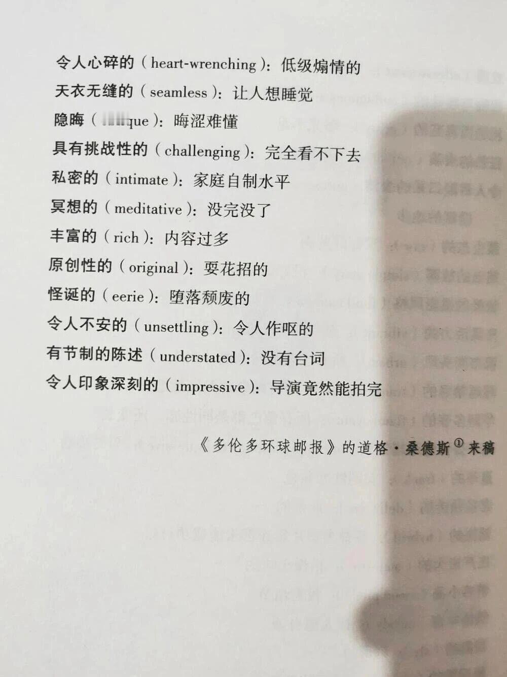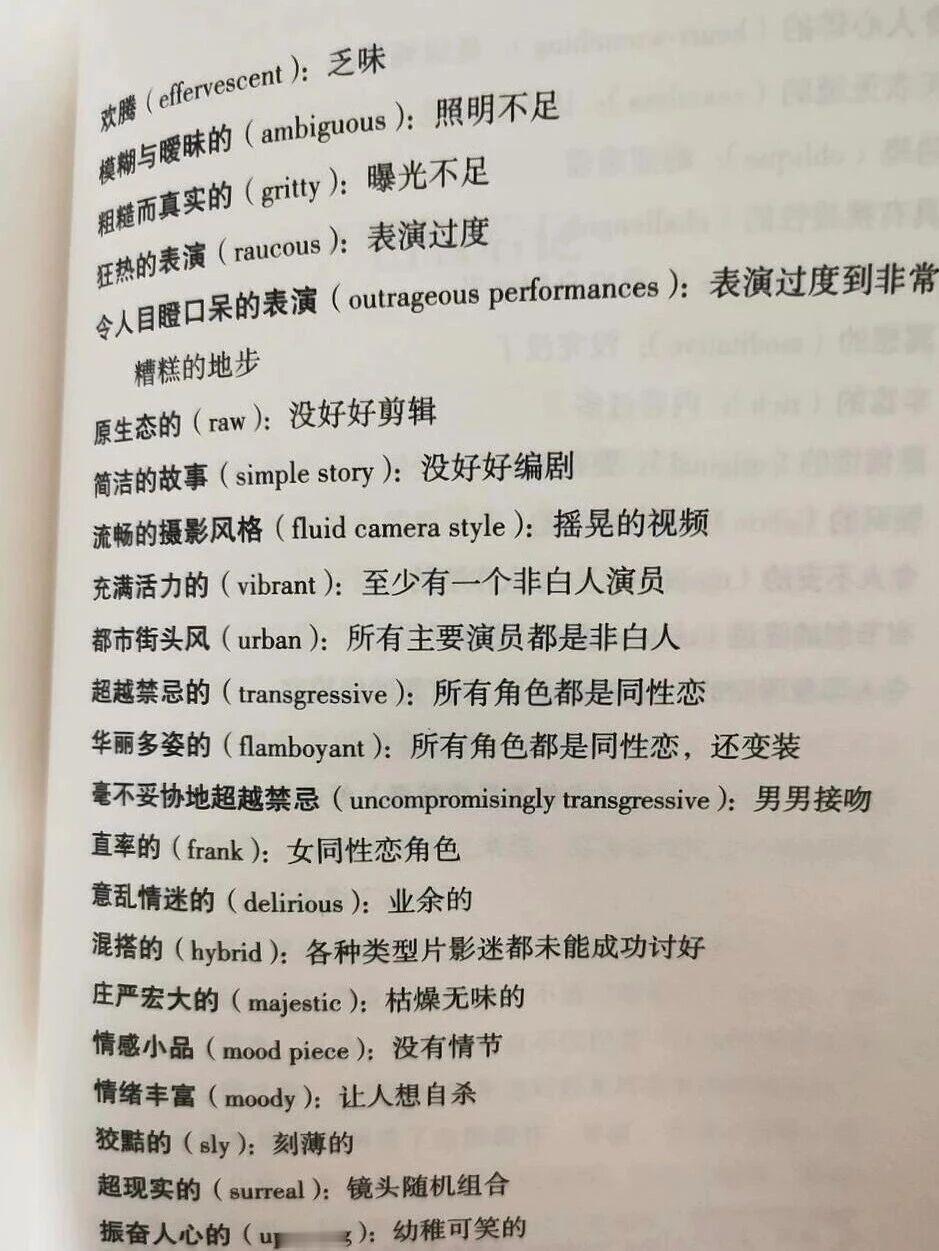 语言的艺术!原来这些都是影视界的行业“黑话”,这下子影评专家们的话都能看懂了。[泪奔] 其实不光影视界,什么评价文章、评价小说一类的,这套话术都能套用,不愧是专家,说话就是有水平![看] 电影行业真相