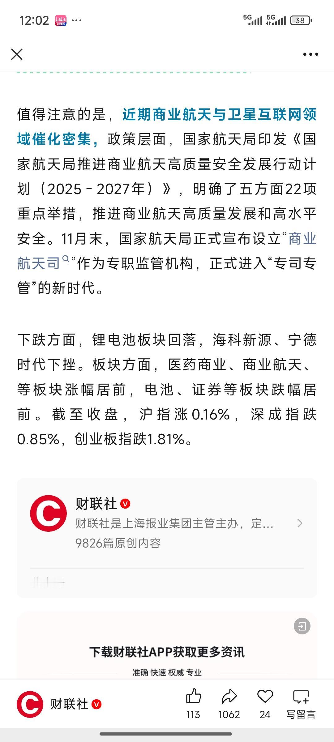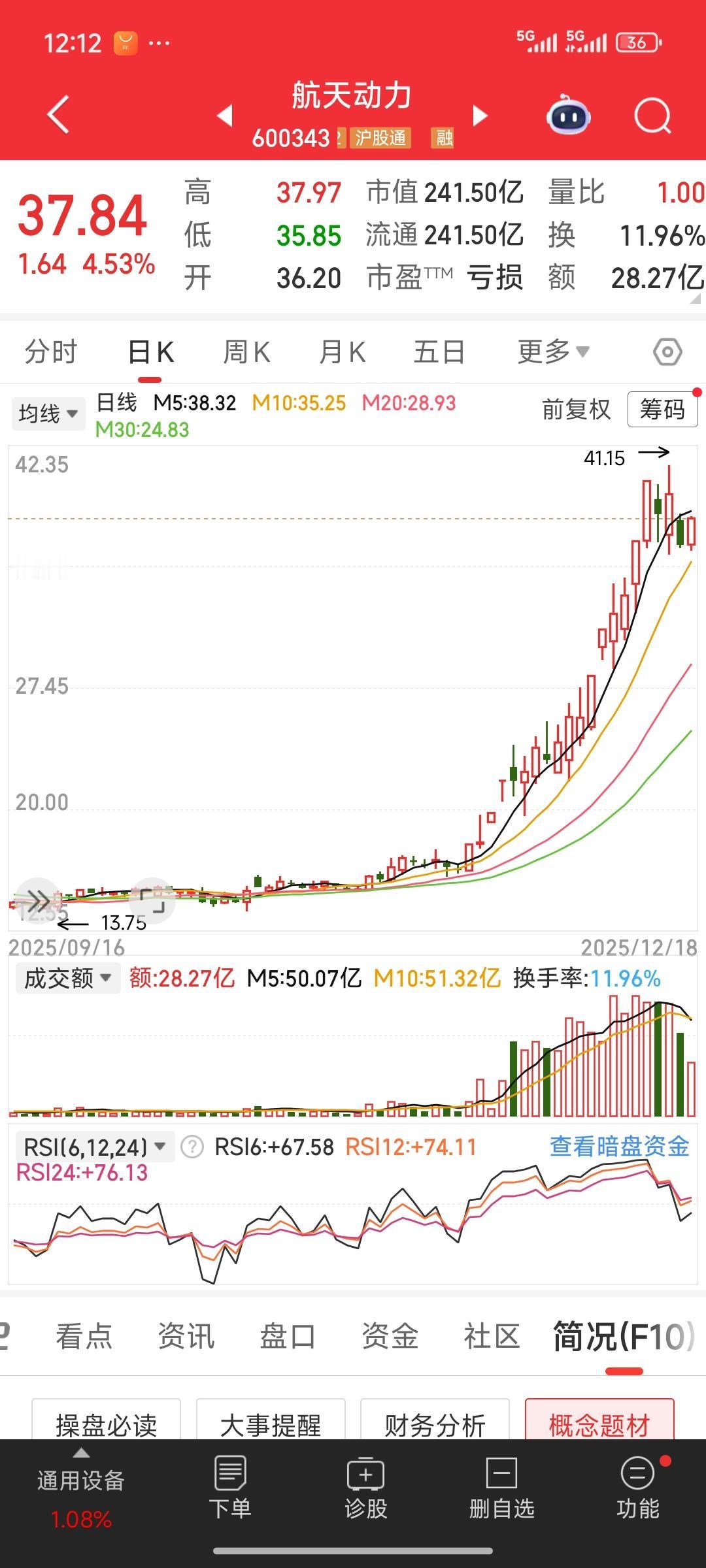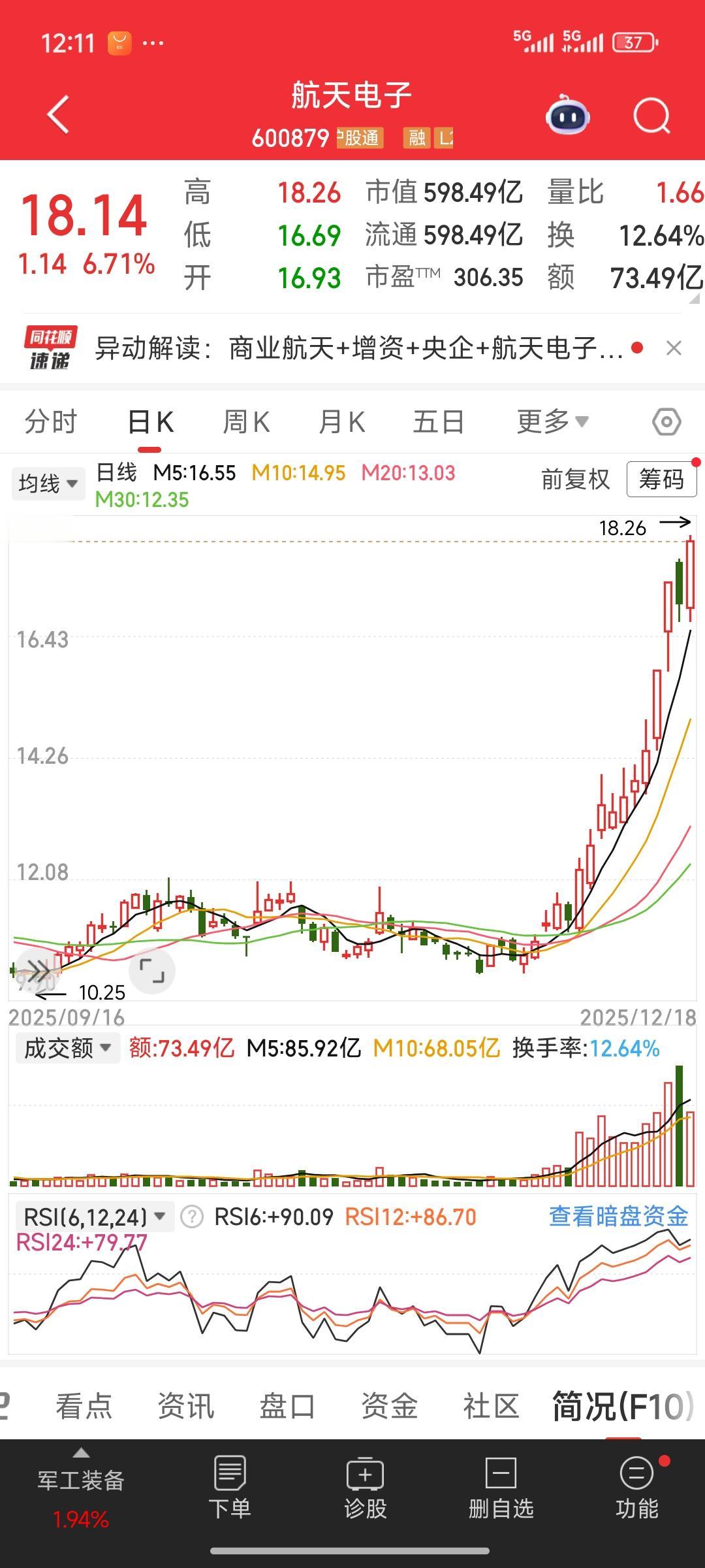 今天,航空航天、商业航天概念再度掀起涨停潮! 事实上,航空航天概念已经火热了半个月,航天电子,航天动力,航天机电,短短半个月都已经涨了两三倍了。十分可惜,这么大的题材,我又一次错过了。只能说我们对信息的解读太过迟钝,往往要等市场表现出来,才知晓这是个大题材、大热点、大板块。 实际上,11月国家就已明确要有重大航天举措,国家要成立国家航天司。如此明显的信息,竟没能引起我这个炒股人的注意。即便看到了,也是一晃而过,没有深入思考,也未进行密切关注。 结果等股价涨上天了,才意识到又错失了一次赚钱发财的机会,真是追悔莫及。所以,我们要提高对信息的敏感度,有信息出现时,要持续高度留意,关注后续发展,这样才能及时捕捉机会,顺利“上车”,享受新概念带来的利润。 航空航天板块 航天概念股 中国商业航天 航天产业 航空航天概念股 航天经济 航天产业链