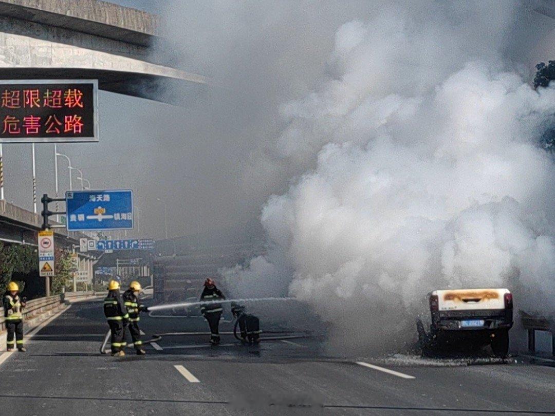 宁波镇海皮卡车突发火情多方合力化险为夷 近日,镇海区交通运输执法人员在嘉象线171K+800路段巡查时,发现前方一辆皮卡车车头浓烟翻滚、出现明火,疑似车辆起火。执法车辆紧急停靠后,两名队员迅速携带装备赶赴现场,确认车内仅车主一人后,立即分工处置:一人设置临时警示区、指挥车辆绕行,另一人劝离围观路人至安全区域,防范二次风险。几分钟后,消防救援车辆抵达,执法队员详细说明火情及已采取的管制、疏散措施,随后配合扑救工作。辖区交警赶到后正式接管交通管制,明火很快被扑灭,此次火情无人员伤亡。事后,执法人员第一时间上报事发情况,勘验人员到场勘查发现,车辆下方路面沥青局部变色软化,边沟有燃烧残留物,可能影响路基安全,后续将开展检测修复。车主连连致谢,执法人员提醒其车内需配备合格灭火器,遇突发情况先保安全再报警。相关部门也将加强货运车辆安全行驶宣传,保障群众出行安全与道路畅通。宁波镇海交通执法员巡查遇火情秒变救火先锋