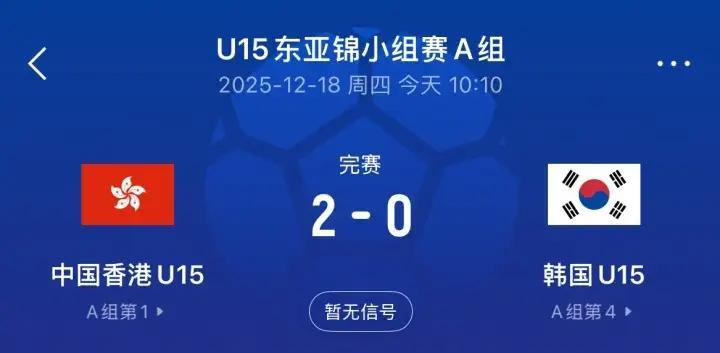 中国香港U15东亚杯太牛啦!刚刚中国香港U15队2比0韩国U15, 香港足球越来越好了,看样子,韩国足球后继无力了;另外一场东亚杯,中国台北U15队10比0横扫北马里亚纳群岛U15队,中国台北青少年队也是进步明显。 下午15点:中国U15国少将大战日本U15队,希望中国U15国少打出漂亮的西班牙传控足球,拿下日本队,中国队加油!