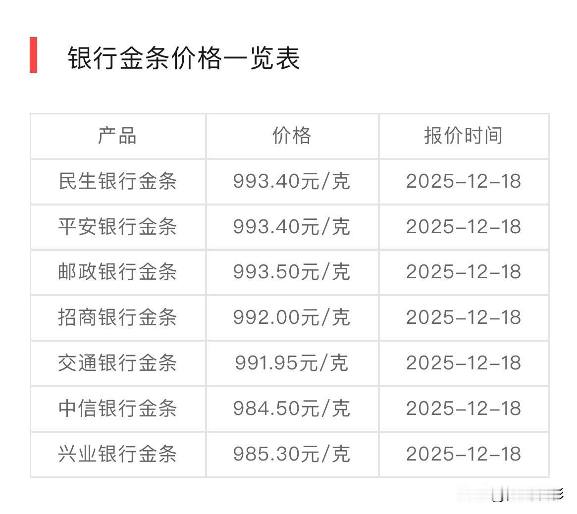 赶紧看 各行金条又上涨了! 农业银行金条1002.15元/克, 建设银行金条991.20元/克, 工商银行金条996.96元/克, 民生银行金条993.40元/克。 同比与昨天各个银行金条都有所上涨,涨幅在1-2元左右。 温馨提示:购买金条有风险哈,购买要通过自己实际购买能力测算。 所有信息都只是提供参考价值! 投资金条金价 金条行情 银行金条 投资金条 银行金条价 银行实物金条 黄金财富金条