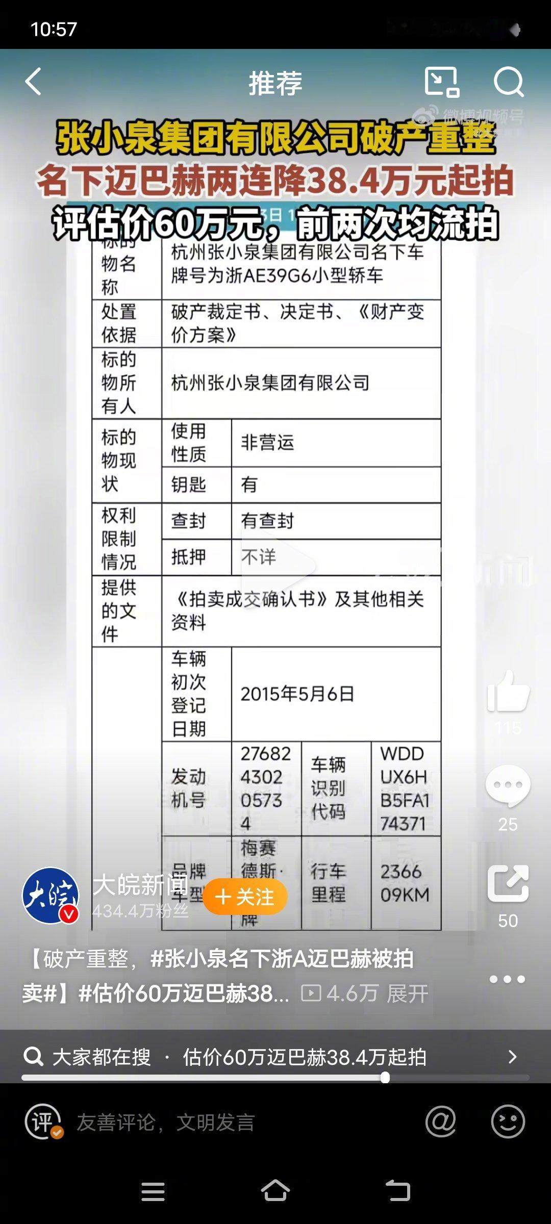 张小泉名下浙A迈巴赫被拍卖这些钱买个新车不香吗?这么多新车可选,为什么要花这么多钱买辆二手车。张小泉不是著名的老字号吗,怎么搞得连车都要拍卖了,让老板走路上班吗?估价60万迈巴赫38.4万起拍
