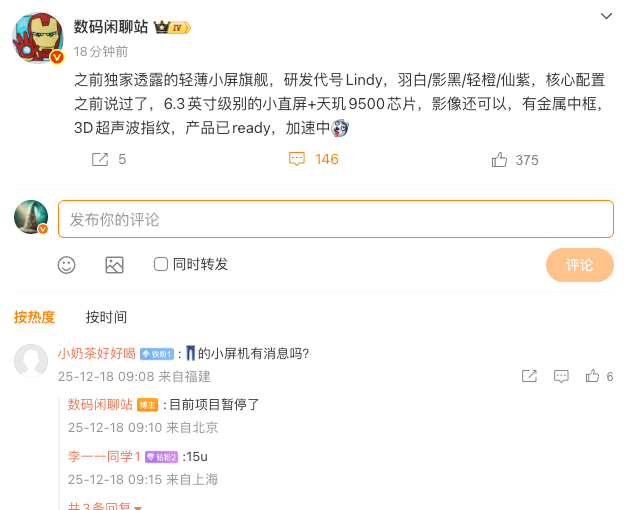iQOO的小屏旗舰项目暂停了,大家可以期待下iQOO 15 Ultra了,但最快也得明年三月了吧?