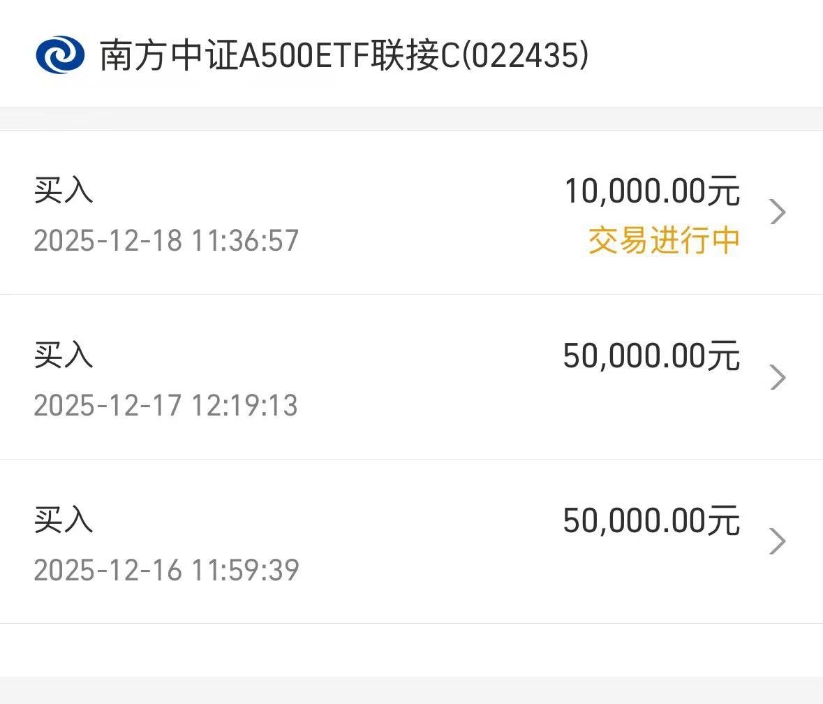 12月18日,最新规模数据显示,股票ETF果真获得资金近百亿净流入,其中A500ETF成最大赢家,净流入超110亿元。全市场A500ETF合计成交额达525.75亿元,是沪深300ETF合计成交额(169.5亿元)的3倍之多。这么惊人的一致吗,主力也觉得A500性价比比沪深300高啊。今天保守点,➕一万南方A500,这个位置挺低的,不怕。