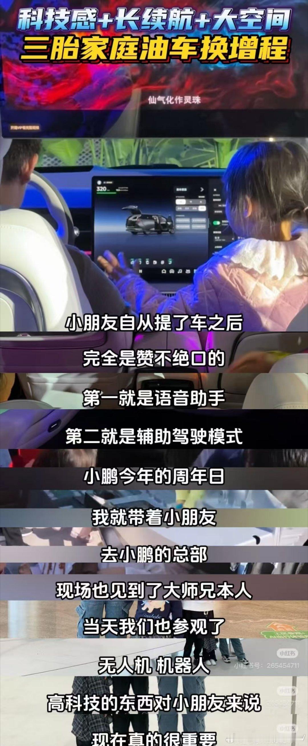 三胎家庭卖埃尔法换小鹏X9超级增程三胎家庭新选择:告别埃尔法,拥抱小鹏X9超级增程!为了给全家带来更舒适、更聪明的出行体验,这位三胎奶爸埃尔法车主果断置换了小鹏X9超级增程。这台车可以轻松容纳七口之家,三排电动折叠座椅实现空间灵活组合,即便满座出行,后备箱仍能装下一整套露营装备。家里老人种草零重力座椅和按摩功能,孩子种草智能语音和车内的种种“黑科技”。对于多孩家庭而言,家庭用车不仅要“坐得下”,更要让全家每个人都坐得舒服、玩得开心。