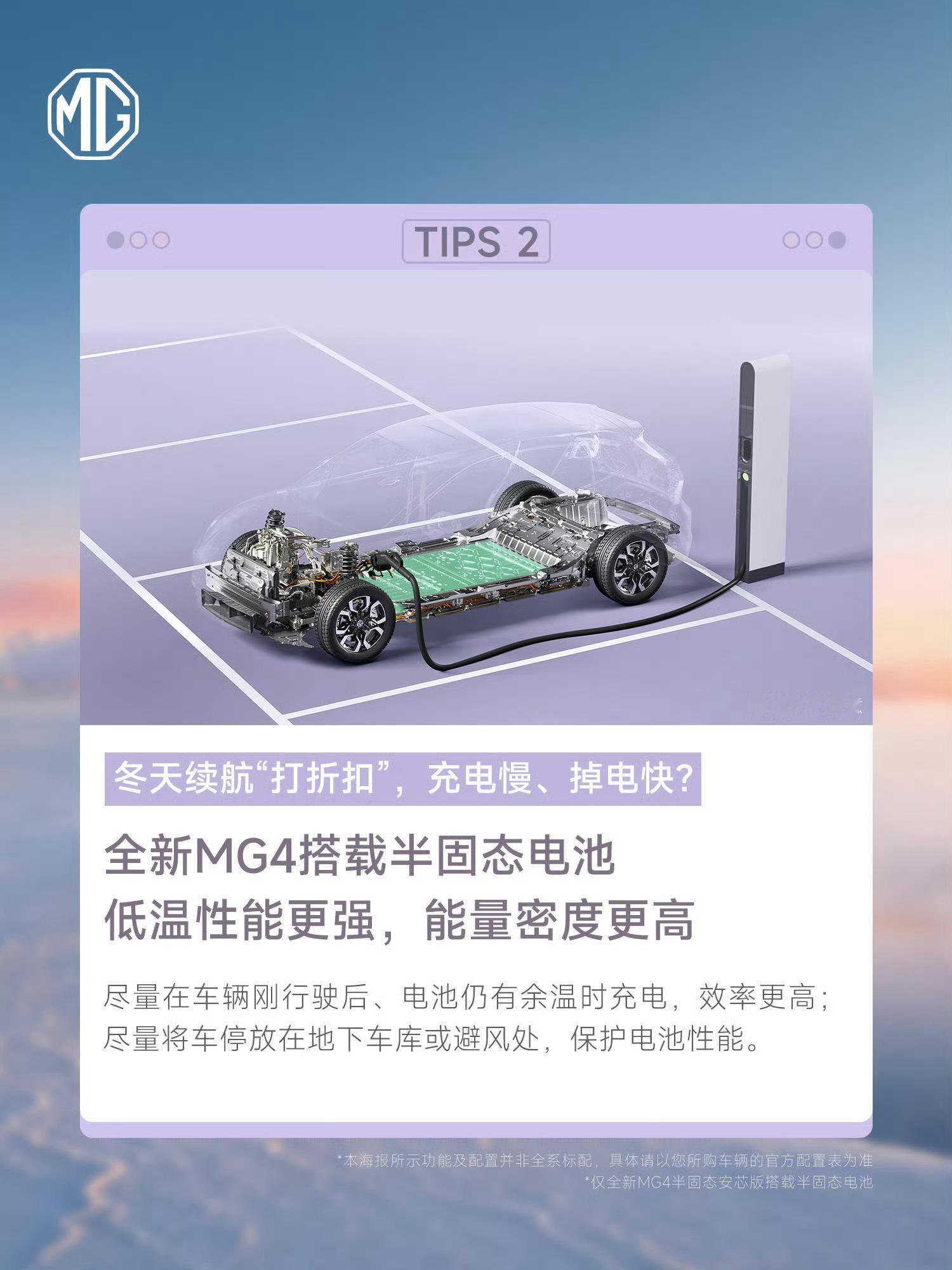 冬至将至,你的全新MG4 准备好过冬了吗?别慌!这份超全冬季用车Tips让全新MG4陪你一起温暖又安心地出发~🚗💨你有什么实用的冬日用车小技巧吗?👇欢迎在评论区分享上汽MG全新MG4半固态安芯版