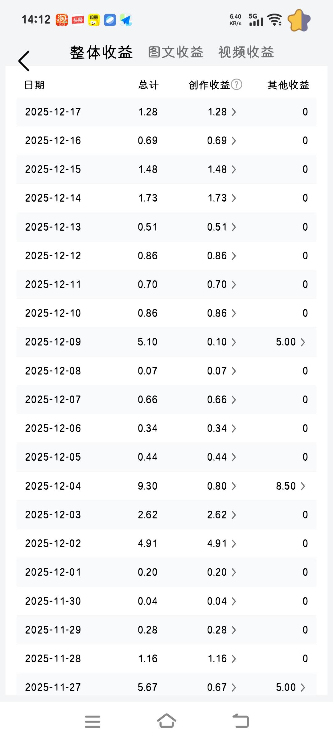 不想写头条了,实在没劲,这样的念头时常在脑海中浮现。可每次打开看到收益,不论多少,只要有点进账,便又有了干劲,那就接着写吧! 收入不算多,可对我而言,曾经从不敢奢望有一天能发表文章。如今虽说收入只是个位数,偶尔才到十位数,我却已十分满足。没法跟那些网红写手相提并论,但我知足了。