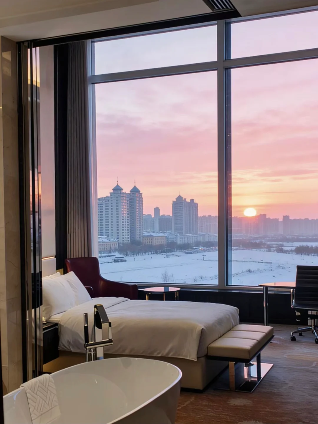 哈尔滨的冬天 是一场盛大而寂静的叙事 松花江的水在零下三十度凝固成诗行 圣·索菲亚的穹顶覆满雪的修辞 中央大街的石砖被百年脚印打磨成散文的韵脚 我在这里 用两天时间 与冬天达成某种和解—— 不是对抗严寒 而是学习如何嵌入这场漫长的白色梦境 ✅行程推荐 D1 圣·索菲亚大教堂→中央大街→巴洛克风情街→松花江铁路大桥 D2 哈六→兆麟公园→音乐长廊→龙塔 D3 伏尔加庄园→冰雪大世界 ✅必打卡景点 ❶圣索菲亚教堂 哈尔滨的洋葱头城堡 积雪覆盖的穹顶像童话里的场景 傍晚亮灯时美得像一幅油画 ❷中央大街 满街都是俄式风情建筑 一定要吃马迭尔冰棍! 零下20°C啃冰棍才是正宗体验 ❸松花江铁路大桥 电影《悬崖之上》同款取景地 百年铁桥超级出片 建议傍晚来拍江上日落 ❹哈六 “东北卢浮宫”免费逛!欧式建筑仿佛置身国外 ❺音乐公园 巨型雪人+欧式长廊 随手拍都是冬日大片 ❻冰雪大世界 当蓝调时刻降临 冰雕城堡开始发光 我呵着热气想—— 这大概就是《冰雪奇缘》的片场 ✅住宿推荐:哈尔滨会展中心希尔顿酒店 坐落在哈尔滨的城市动脉上 北瞰松花江银装素裹的壮阔 南望中央大街的百年流光 是探索冰城的完美起点 步入8米挑高的大堂 冰凌灯饰与雪花纹理将北国凛冽凝练为艺术 酒店独享的冰雪仪式感 用冰晶杯畅饮格瓦斯 体验冰火交锋的奇妙 在酒店就可以品尝特色糖葫芦 这份独有的甜 恰是旅途中最温暖的纪念 在希尔顿 食物成了当地的邮票 让我确信 它已将这座城市的精髓 凝练于方寸餐桌之上 为我寄来一份从早到晚 丰盈而完整的风物帖 清晨 我被早餐厅的豆腐脑香气唤醒 粘豆包裹着红豆馅 红肠切片搭配列巴与黄油 中西合璧的餐盘里 藏着哈尔滨的包容与热情 中午在西餐厅点一份牛排套餐 肉香与红酒酱汁在低温慢煮中交融 午后 在行政酒廊的落地窗前 捧着一杯热红茶 品尝索菲亚教堂造型的慕斯蛋糕 在此处 沉浸于冰雪元素与欧陆风情的交织之中 让都市微度假的想象得到极致的满足