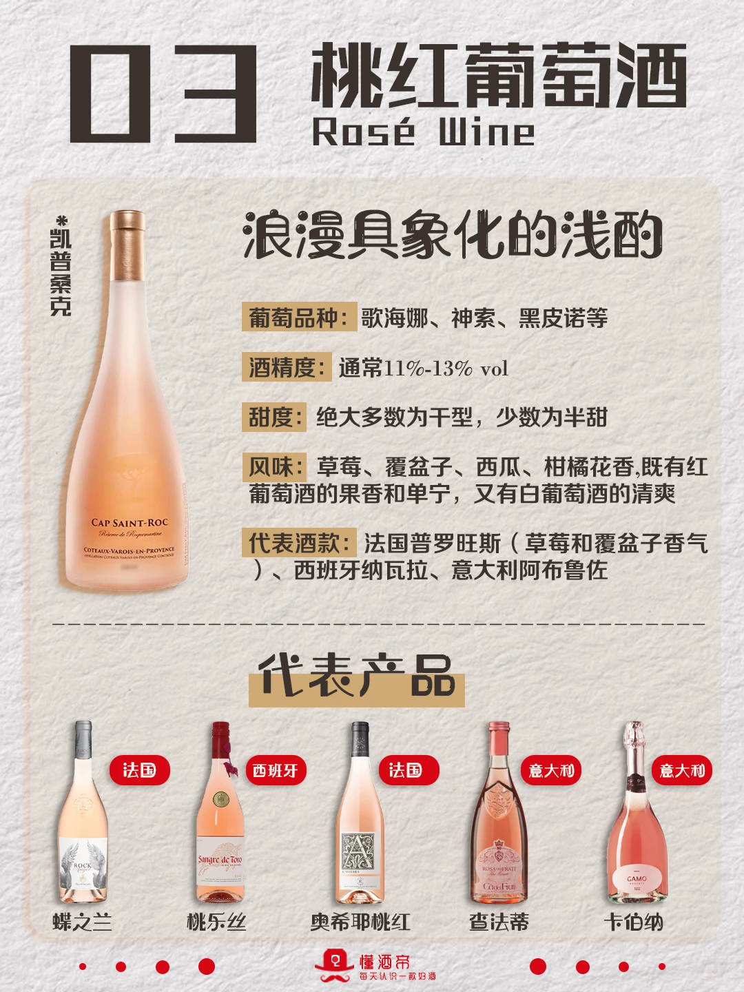 · 葡萄酒🍷有哪些常见类型⁉️ ✔️从饱满优雅的红葡萄酒、清新的白葡萄酒, ✔️到浪漫柔美的桃红、欢快灵动的起泡酒, ✔️还有甜美迷人的甜酒、风味浓郁的加强酒…… ✅️想一次搞懂葡萄酒的类型 👻收藏这篇就够了‼️ ·