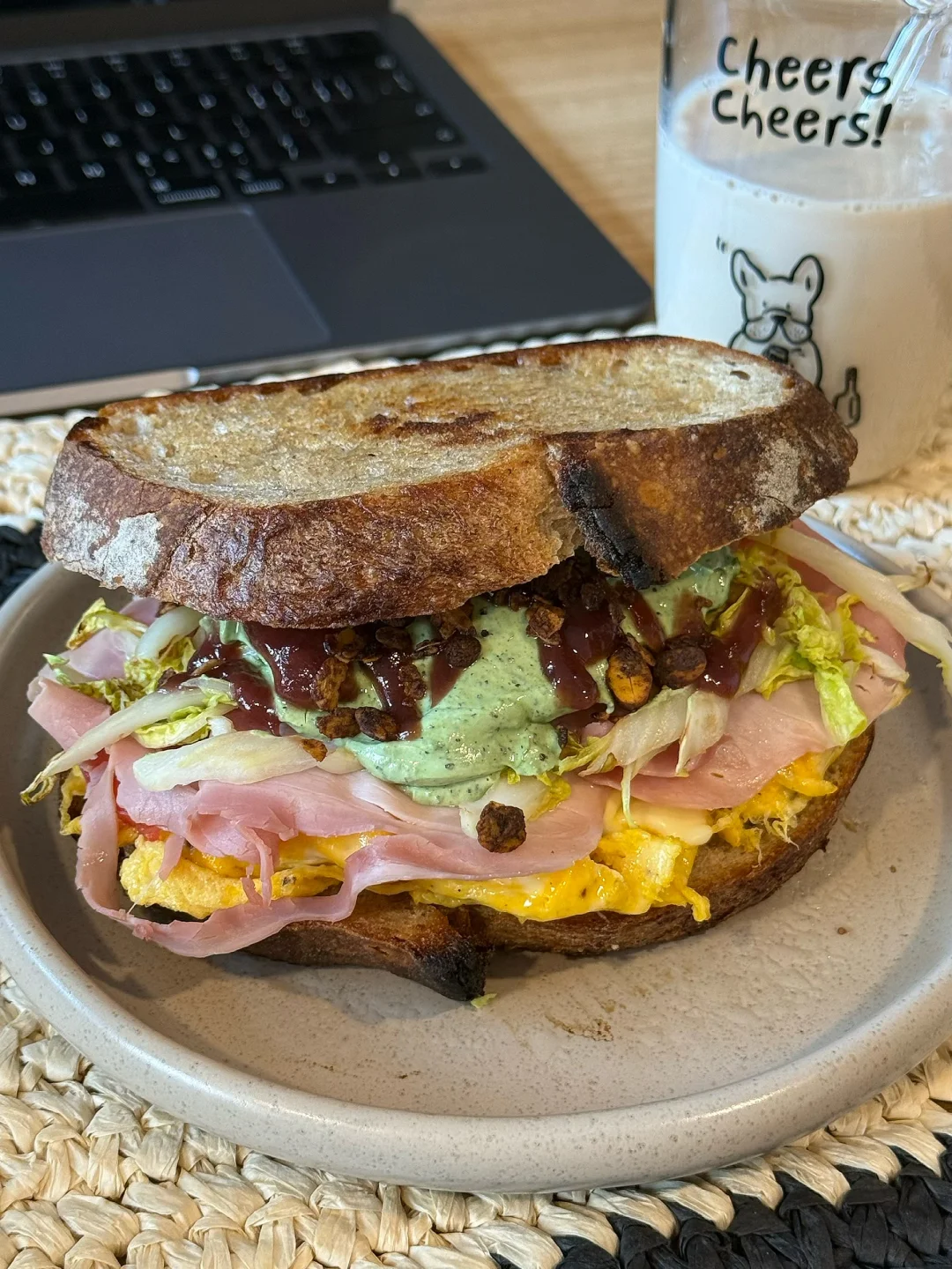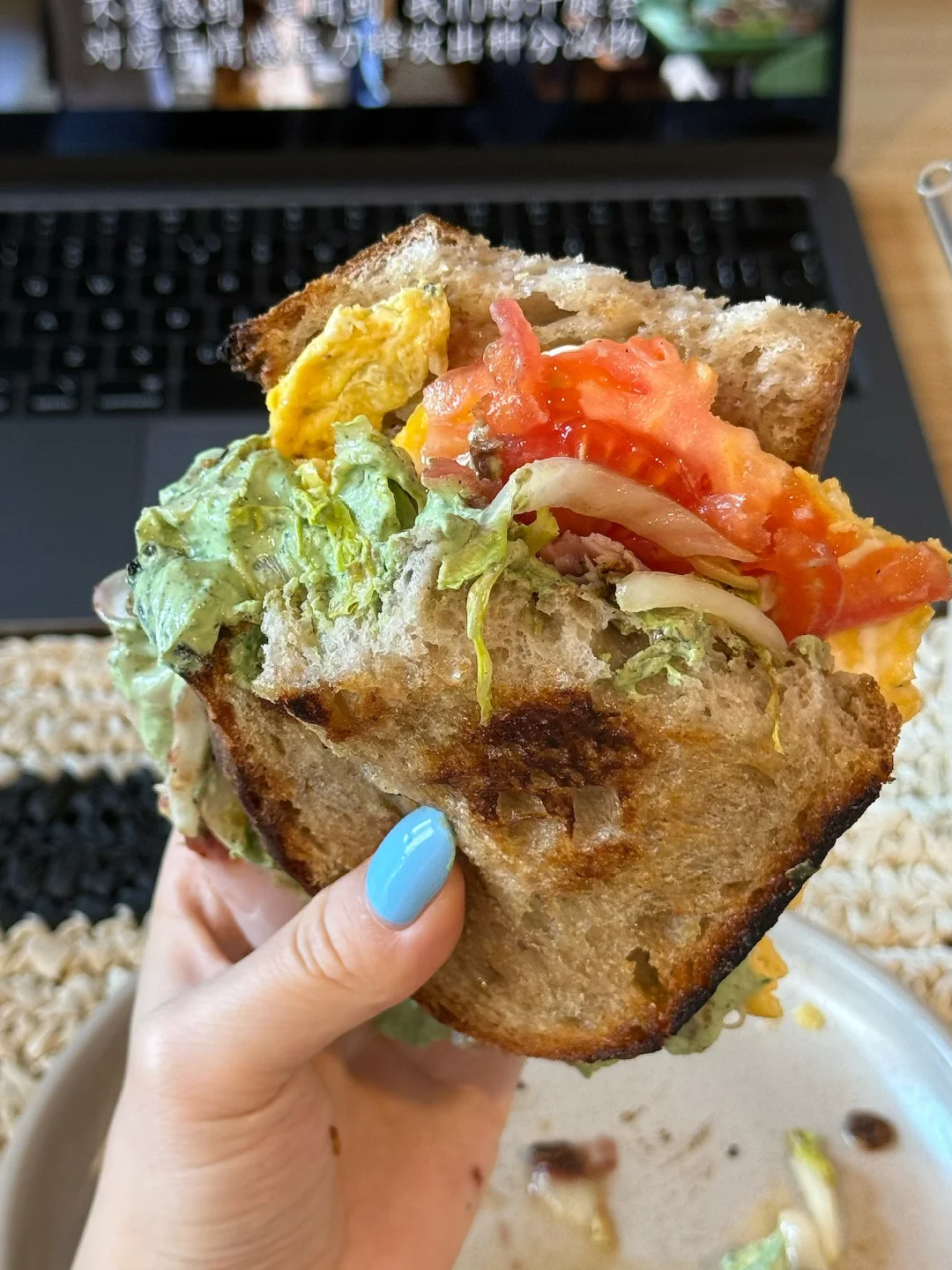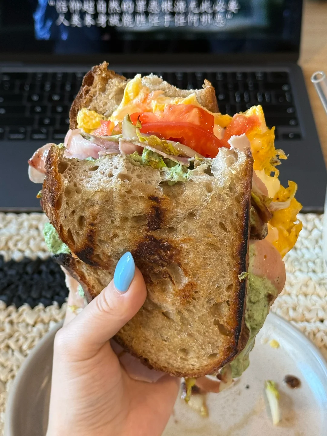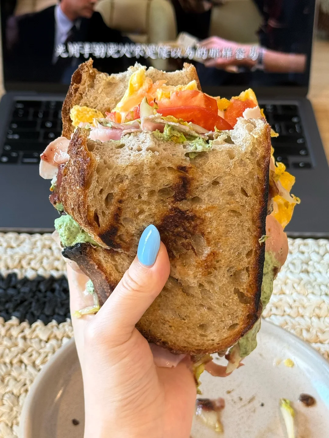 🍞 超香超脆纯鲁邦乡村,加了亚麻籽油低温煎一下,tree tree🎄的好好吃🤤
