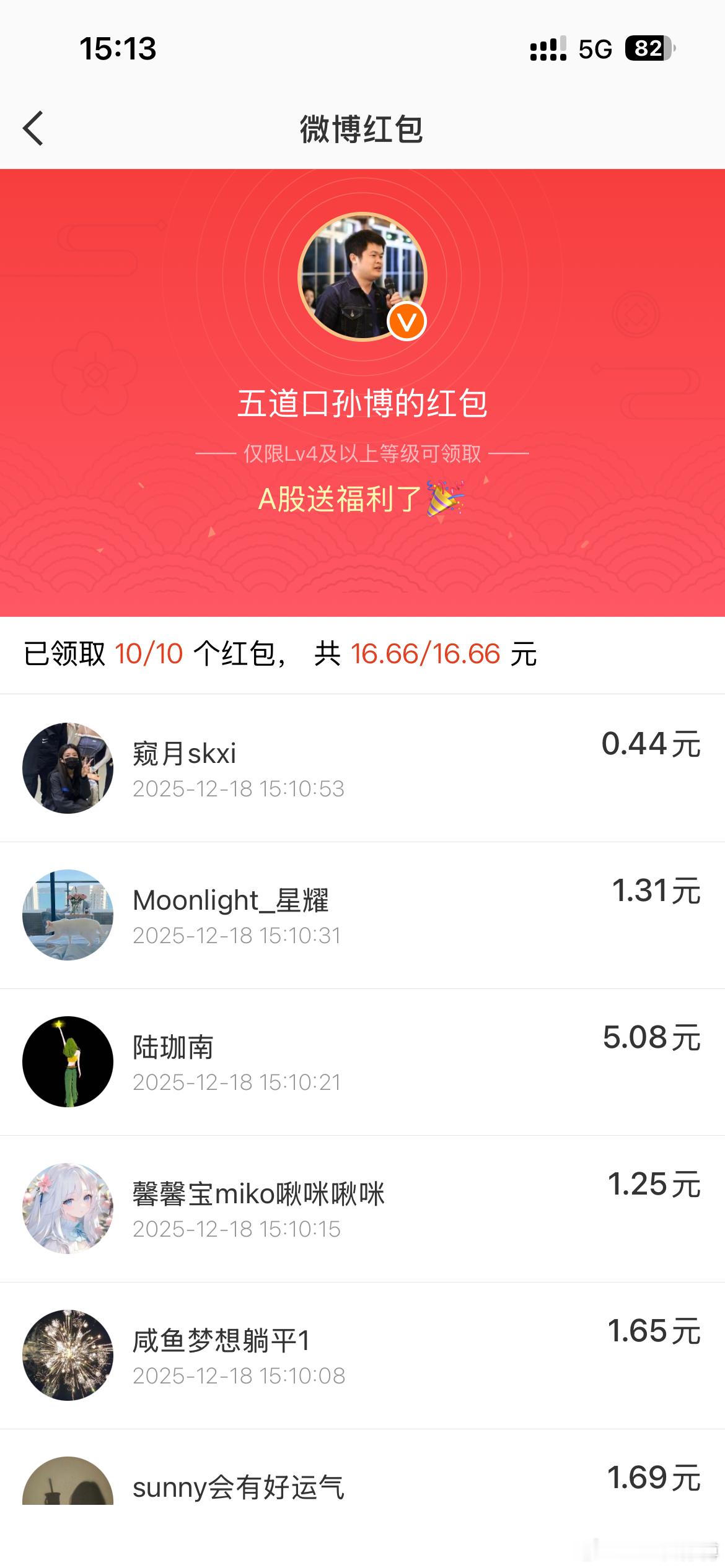 抽奖前先真人铁粉群热热场子。感谢A股送来粉丝福利五道口孙博的红包a股行情孙博炒