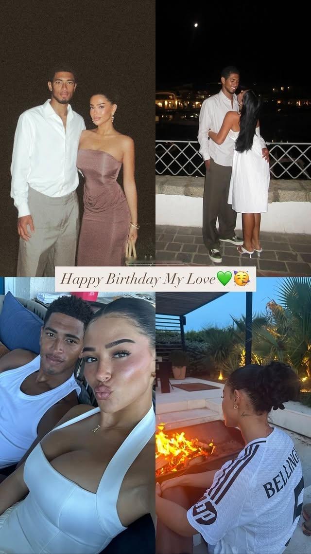 抱俩金砖😍22岁贝林厄姆晒照为28岁女友庆生:生日快乐💚🥳