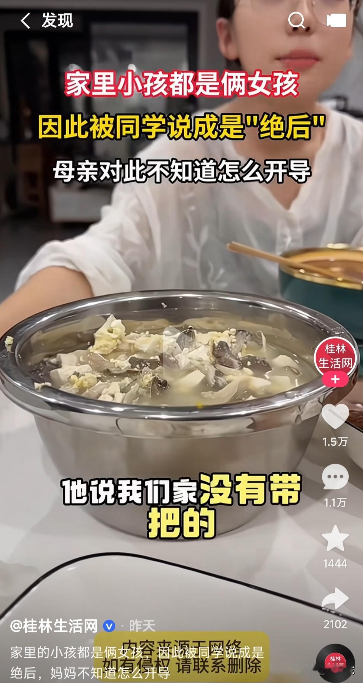 家里都是女孩的面对这种情况如何怼回去? 女生家里姐妹两个,竟被同学嘲笑家里没有带把的就是绝后,母亲对此也不知道怎么开导孩子,于是就把这一幕发到了网上。 难道所有生女儿没有儿子的家庭都是绝后吗?中华几千年来重男轻女的思想在有些人眼里就已经根深蒂固了吗?那个男人不是女人生的?那个人的家里没有女人?说家里全是女儿没有带把的就是绝后的那些人,他们能保证自己家里世世代代都会有男孩吗?他们能保证男孩就一定能娶上媳妇吗?百年以后谁还会记得谁的存在? 如果说家里都是女孩没有带把的都是绝后,那些不婚主义者那岂不是家族从此绝种了吗?这到底是什么逻辑思维?难道生儿子就有皇位继承吗?没有女人你儿子一个人能生出孩子来吗?