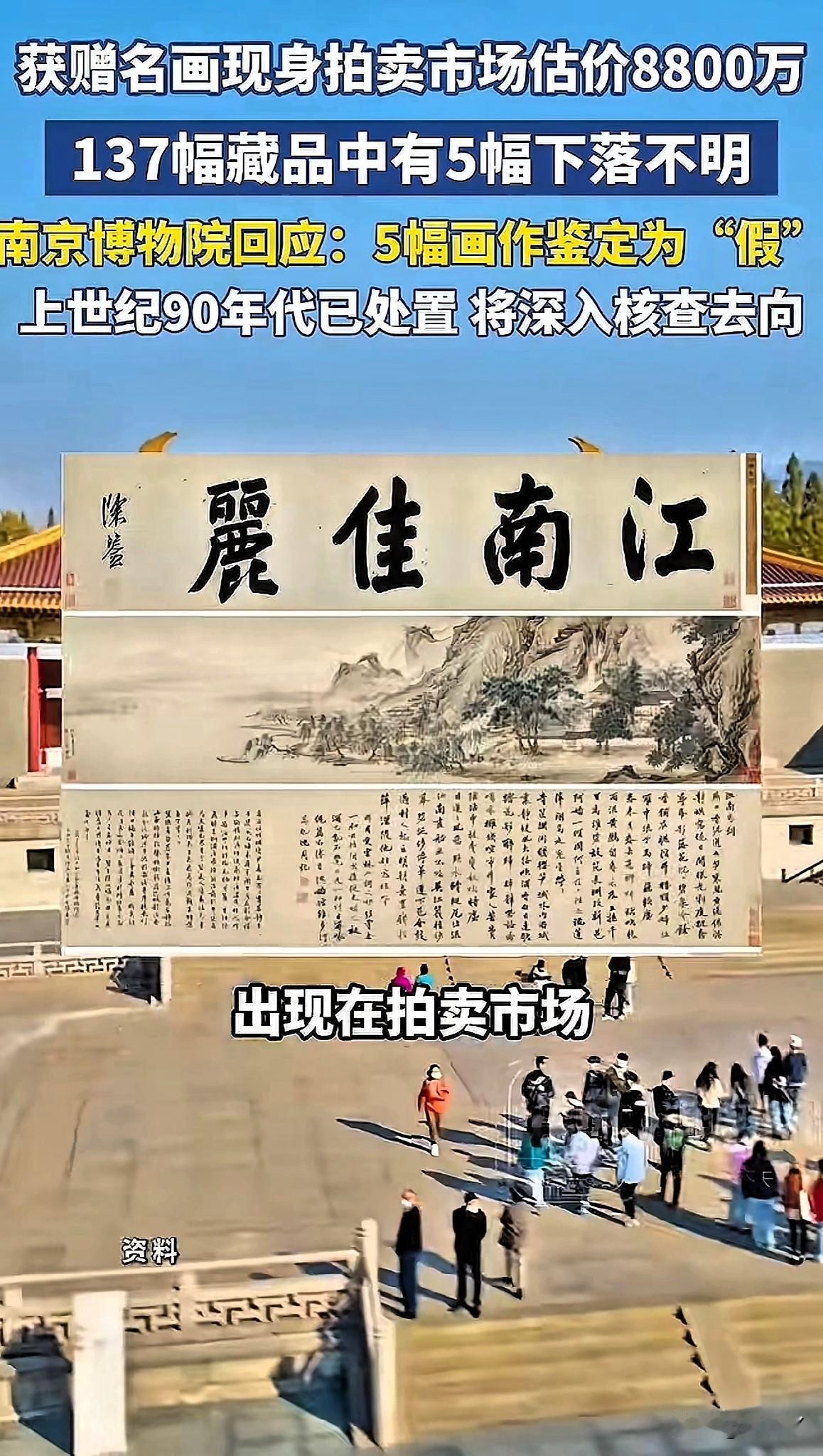 特意去对了下账,南京博物院那几件“失踪人口”算是破案了。 明代仇英的《江南春》、北宋赵光辅的《双马图》,加上王绂、王时敏、汤贻汾的轴画,整整5件! 最离谱的是什么? 那幅《江南春》居然敢堂而皇之地摆上拍卖台! 这哪是丢了啊,分明是有人把公家的宝贝搬自家后院去了。 咱普通人买个二手车还得看手续呢,这种级别的国宝上拍,委托人是谁?经手人是谁?拍卖行那是必须要留档的。 现在倒好,网上干干净净,一点痕迹没有,这盖子捂得是真严实。 其实这事儿想查简直太简单了。 画现在谁手里,顺着这根藤往回摸,钱从哪出的、又进了谁的腰包,还能查不出来? 除非啊,是有人不想查,或者不敢查。 都在这揣着明白装糊涂呢。 咱们这些看客也就是瞎操心,人家这就是在挑战大伙的智商底线。 这水,深着呢。