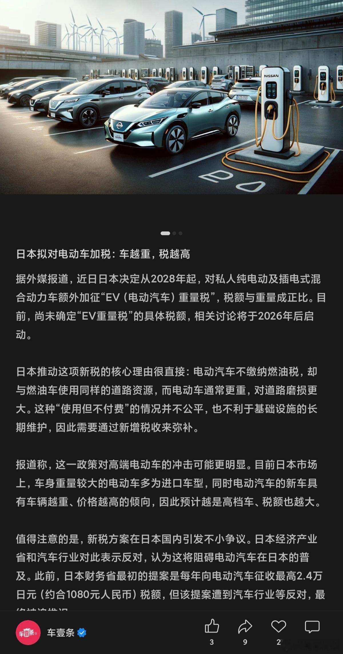 啊???日本对新能源车增收“重量税”前两天还在讨论轻量化技术的问题~大v聊车