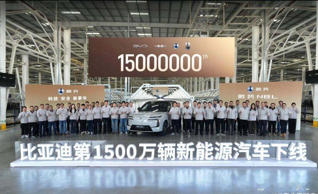 比亚迪的1500万辆新能源汽车下线,下线车型选的是腾势N8L,作为腾势给出的30万级大六座SUV,还有云辇+易三方。我觉得在某种程度上,也筑牢了腾势在30万元价位的价格防线,第1500万辆车选择给到N8L也体现了比亚迪现在对这车所寄予的厚望。相比于同价位燃油三排SUV,腾势N8L综合给的确实太多了!比亚迪第1500万辆新能源汽车下线