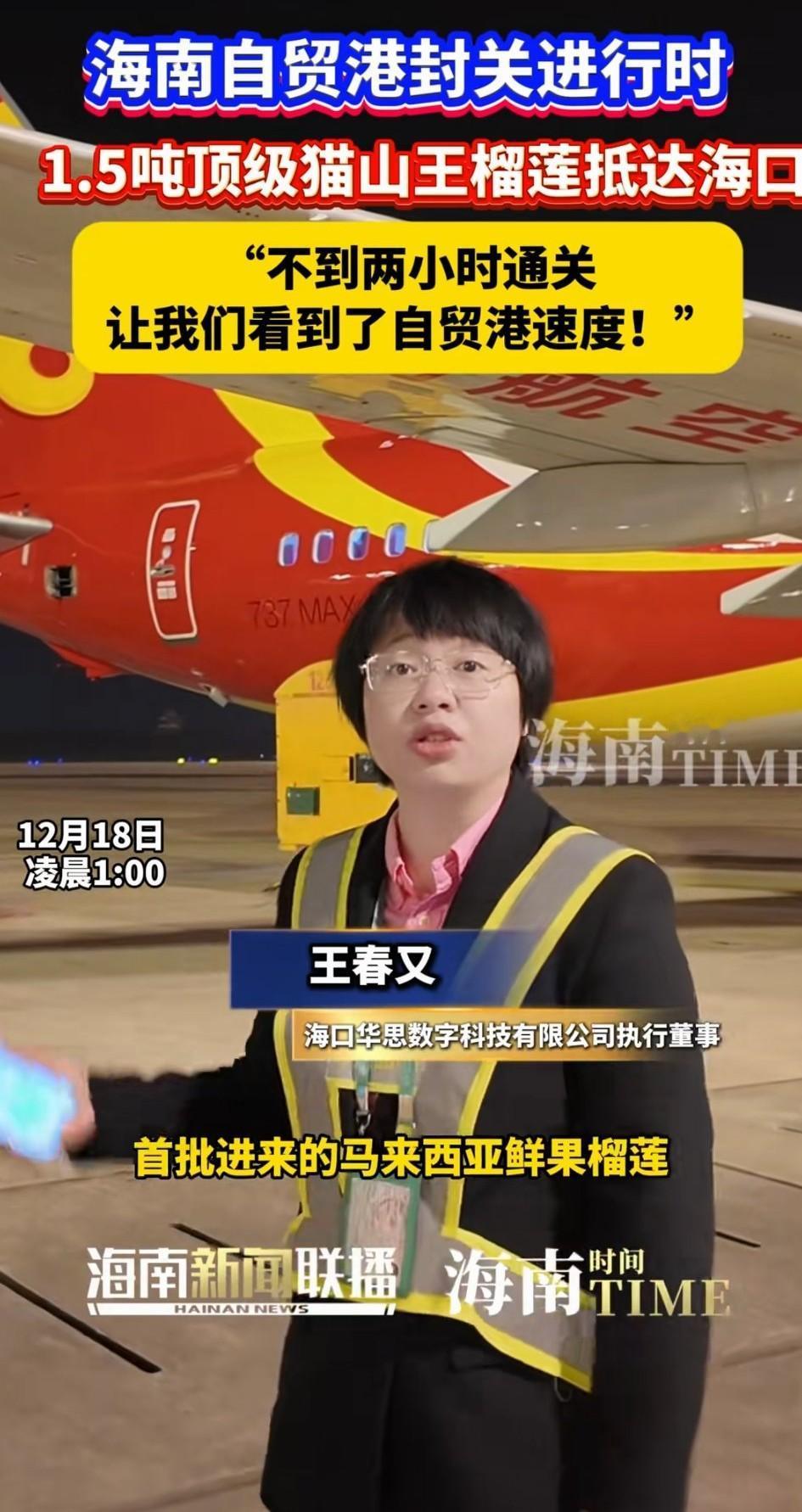 1.5吨猫山王空降海口!自贸港政策让榴莲自由成真 凌晨的海口美兰机场藏着大惊