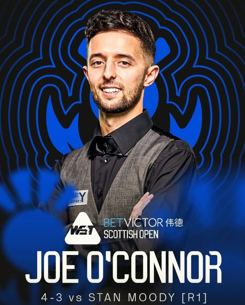 奥康纳在苏格兰公开赛32进16轮次以4-2淘汰世界冠军赵心童,将在下一轮对阵苏尔蒂。