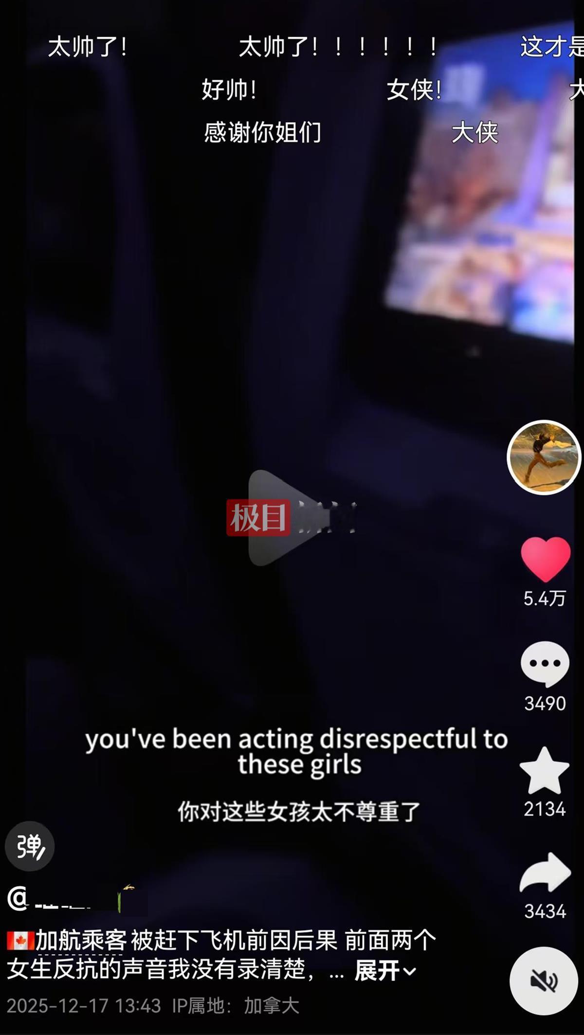 不愧是东北的女生!一名哈尔滨女生在加拿大读博士,在一架国际航班准备转机时,突然听到一名外籍男子辱骂两名中国女乘客,女生越听越气,一下脾气就上来了,用英语对其反击,而随着男子被带下飞机,飞机上一片掌声。女生表示:看到同胞受欺负,自己就是忍不住“多管闲事 孙女士介绍,当天她从哈尔滨出发,经首尔转机去多伦多,本来只是普通的一段长途飞行。前排坐着两名中国女生,对面是一名外籍男子,结果男子对着两名女生打招呼,或许是没被理睬,突然气急败坏的骂了起来,被针对的是前排中间那位年纪更小的女孩,旁边的同胞一直在帮她挡话,试着把冲突压下去 孙女士也先提醒她们可以找空乘换座位,事情一度安静下来。可没多久,那名男子再次情绪失控,骂得更难听。孙女士摘下耳机,站了出来,用英语直接回击 飞机还在滑行,空乘过来处理。男子不仅不配合,还开始对空乘发火。结果就是飞机调头,男子被带下机舱。那一刻,掌声响起,不是起哄,是松了一口气 事后了解,被辱骂的女孩只有19岁,还在读大学;旁边那位帮忙挡话的女性已经工作。而孙女士自己,是个在加拿大读博士的哈尔滨姑娘。她说自己向来爱管闲事,尤其是看到同胞受欺负,实在忍不了 这段视频传到网上后,网友们也是忍不住称赞,有网友说她是女侠,有网友说她太帅了 说实话,这件事之所以让人夸赞,不只是因为一位女生勇敢站出来,更因为她展现了一种“不怕事”的底气。很多人在国外遇到类似情况,可能会因为语言障碍、怕惹麻烦或是不熟悉环境而选择沉默。孙女士的回应,恰恰打破了这种隐忍的常态 她不是盲目冲撞,而是在观察、建议无效后才果断介入。这种有理有节的应对,比单纯的情绪宣泄更有力量。而那句“我就是爱管闲事”,背后其实是责任感,不把同胞被欺负视为与己无关的“闲事”,而是当作自己应该介入的事