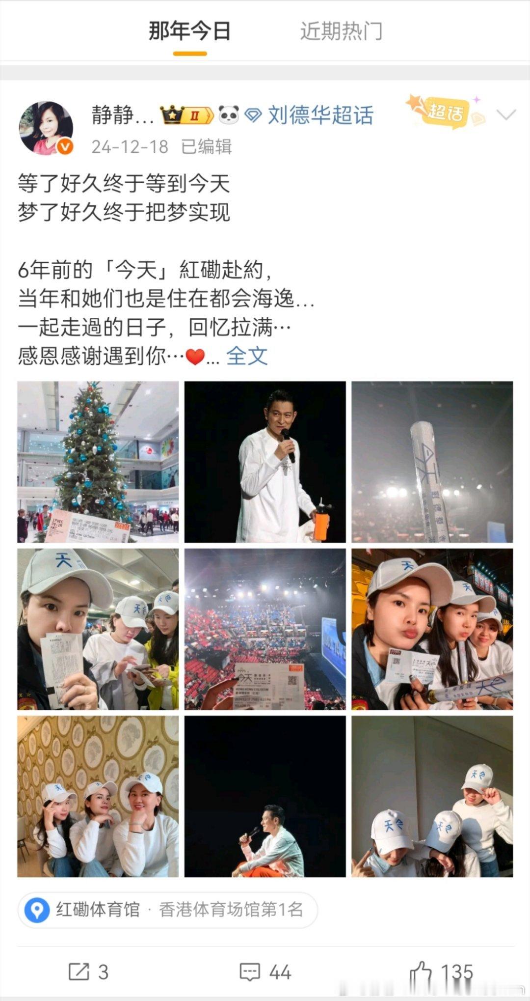 翻到去年今天的朋友圈,才惊觉一年时光已经匆匆而过。那天和闺蜜挤在刘德华演唱会的人海里,跟着全场大合唱的激动,现在想起来都有些恍惚。只是这一年,好像什么都在悄悄改变,曾经那样尽兴的快乐,如今竟很难再复刻。经济下行的风一吹,连记忆里那些鲜活的片段,都渐渐蒙上了一层模糊的纱。原来,曾经那些无忧无虑的日子,真的会变成回不去的从前。。。。。。“等了好久终于等到今天,梦了好久终于把梦实现”,只是没想到,那样的今天,竟成了回忆里的绝版。
