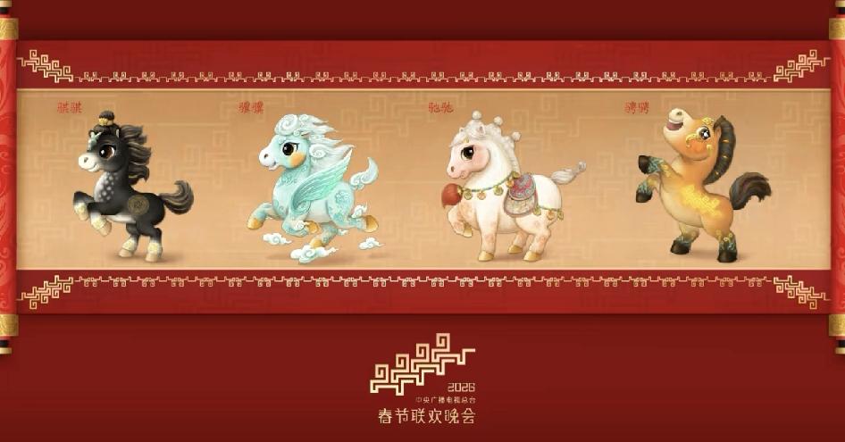2026年总台马年春晚吉祥物公布。 感觉第一只好可爱第二只好漂亮第三只胖胖的但是又感觉很温柔第四只感觉很活泼。