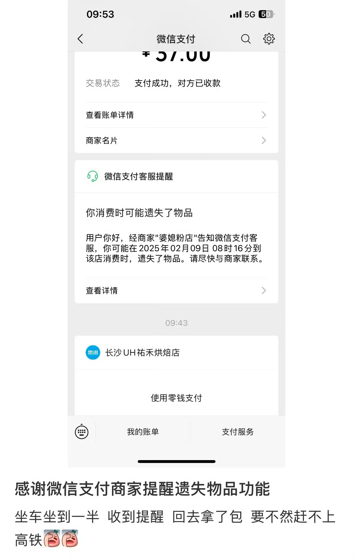 这功能挺实际。扫码付过款,万一落了东西,店家就能通过支付记录发消息找你。对于我这种出门总得回头找手机钥匙的人,真帮大忙了。第一次知道微信支付还有这功能