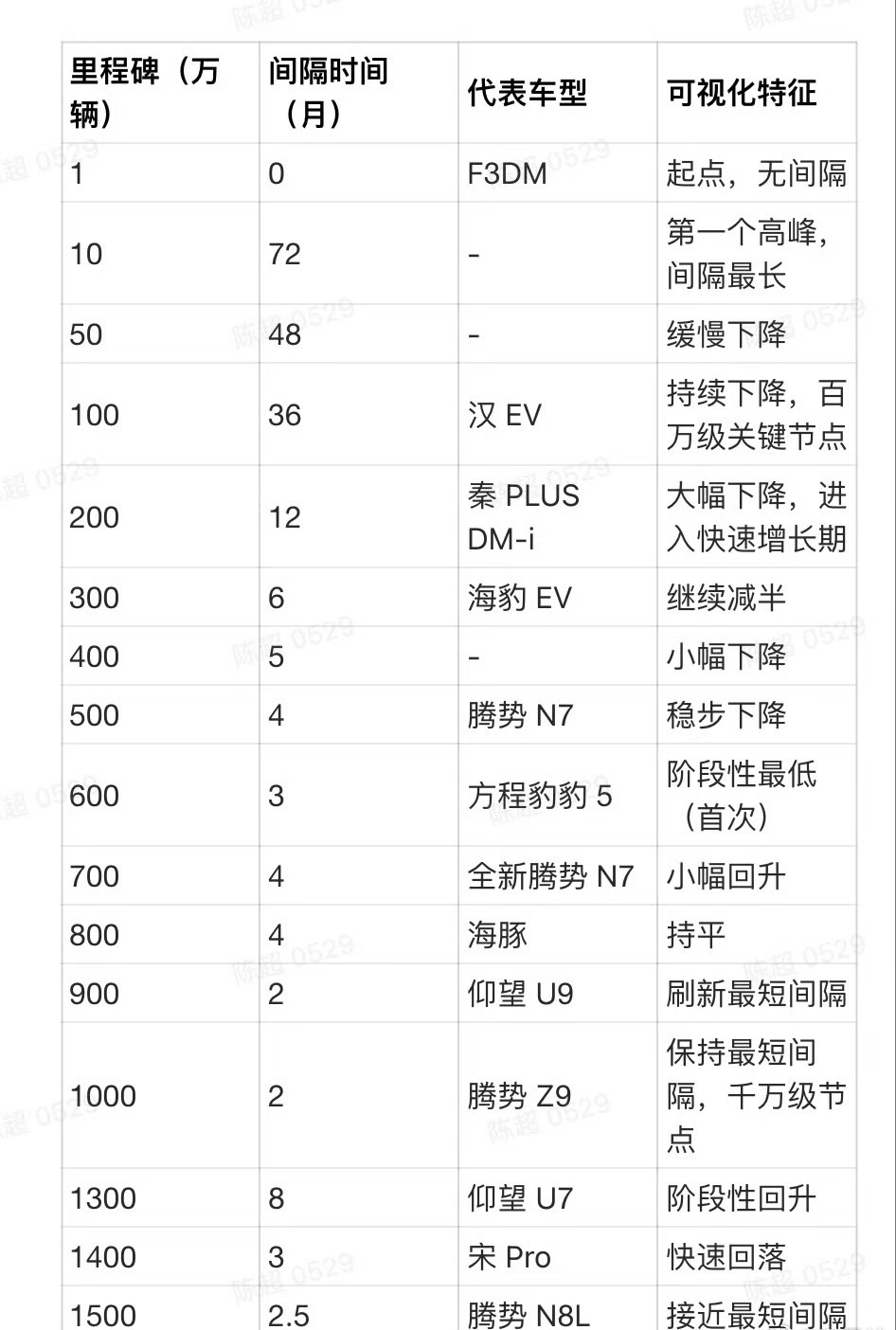 比亚迪第1500万辆新能源汽车下线刚好也是腾势N8L 第15000辆下线,10月9日,比亚迪第1400万辆新能源汽车在巴西乘用车工厂正式下线,时隔两个月,比亚迪又迎来了第1500万辆新能源汽车下线,这速度太牛了!以下是比亚迪百万里程碑下线的用时:600-700万,122天;700-800万,265天;800-900万,283天;900-1000万,54天;1300-1400万,81天;1400-1500万,69天。1500万是中国速度,更是世界选择!比亚迪第1500万辆新能源汽车下线腾势N8L