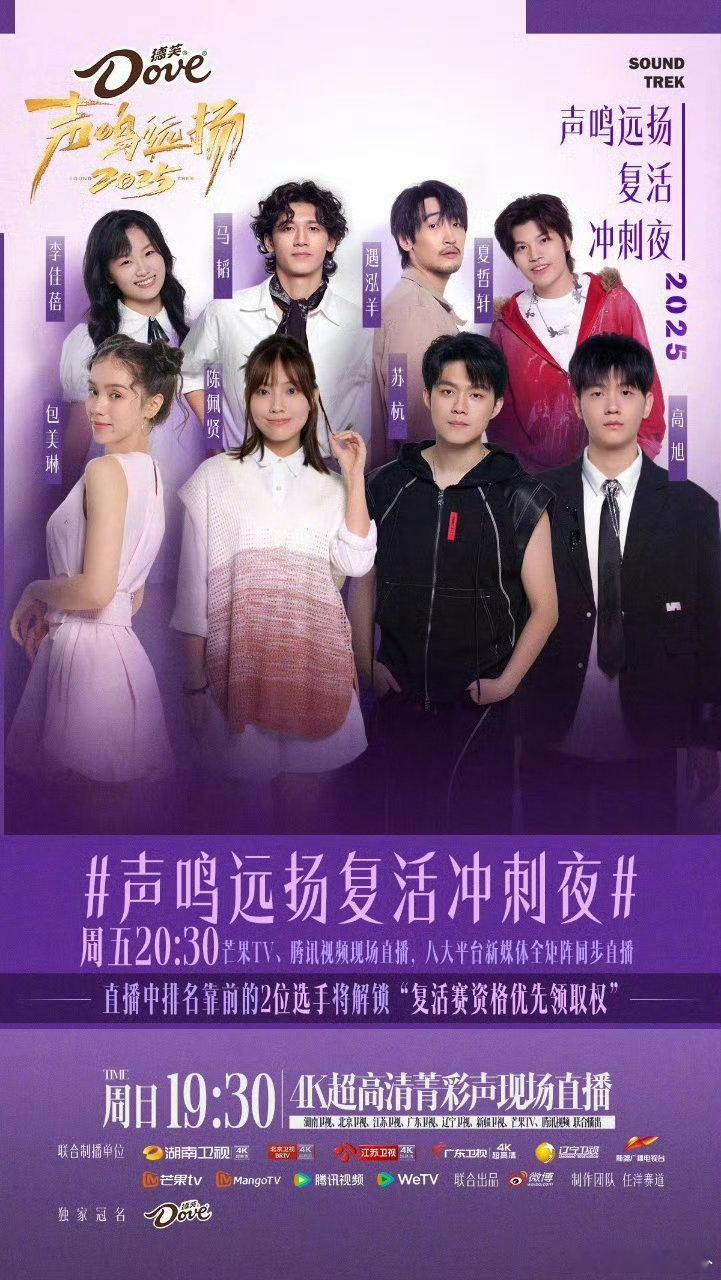 声鸣远扬复活冲刺夜声鸣远扬 期待已久的复活赛关键一战来啦!选手喜爱度投票后,8位选手晋级。12月19日晚20:30,直播间内,看谁将夺得复活资格优先权,强势回归!