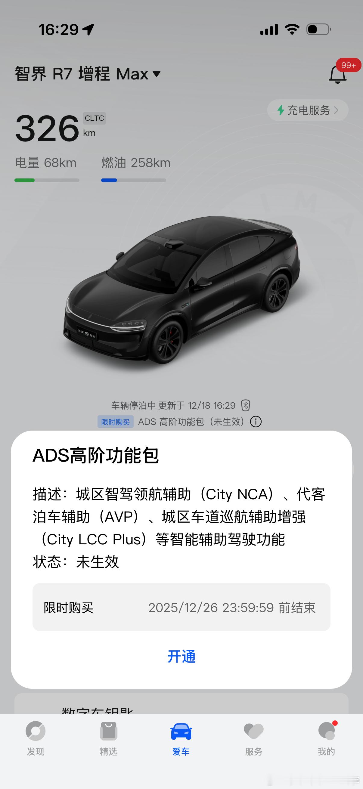 今天手机弹了个通知告诉我我的ADS4城区辅助驾驶到26号不买就要涨价了1万2就可以解锁城区辅助驾驶了但是让我提车后付钱我现在又有点心痛💔有没有没买城区辅助驾驶的鸿蒙车主举个手让我看看来!鸿蒙智行智界r7新款售价24.98万起我与汽车的日常